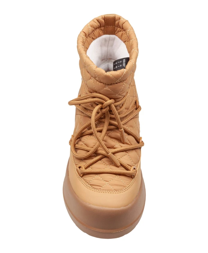 Бренд: Moon Boot Цвет: бежевый Материалы: верх: 80% полиамид, 20% полиуретан | подкладка: 85% полиэстер, 15% полиамид | подошва: 75% эва, 25% термопластичная резина | сделано в китае удалите грязь мягкой сухой щеткой. протрите пятна мягкой влажной тканью с мягким моющим средством. почистите межподошву и внешнюю подошву мягким моющим средством и водой. дайте высохнуть при комнатной температуре и храните в защитном пакете.