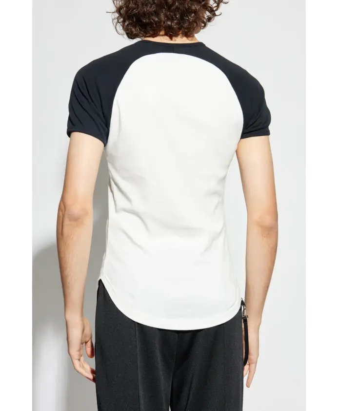 Белая футболка с логотипом - воплощение изысканного минимализма и современной элегантности. Классический, скроенный силуэт с прямым кроем и слегка закругленным низом идеально подчеркивает фигуру, а контрастные черные рукава реглан добавляют яркий, но сдержанный штрих. Изготовленная из мягкого, эластичного хлопкового трикотажа, эта модель обеспечивает ощущение роскоши и исключительный комфорт в течение всего дня. Мастерски обработанные швы и едва заметная вышитая дизайнерская эмблема Courrèges на груди подчеркивают эксклюзивность этого изделия. Эта футболка представляет собой квинтэссенцию вневременного стиля французского модного дома, органично сочетающего современность и традиции. ПОЧЕМУ ВЫБРАТЬ ЭТОТ ТОВАР? * Уникальная дизайнерская конструкция реглан * Элегантный вышитый логотип на груди * Исключительно качественный натуральный хлопок * Превосходное качество изготовления и долговечность * Универсальность - идеально подходит как для повседневной носки, так и для особых случаев. Параметры модели: Рост: 193 см, Обхват груди: 95 см, Обхват талии: 82 см, Обхват бедер: 93 см. Модель носит размер: L.