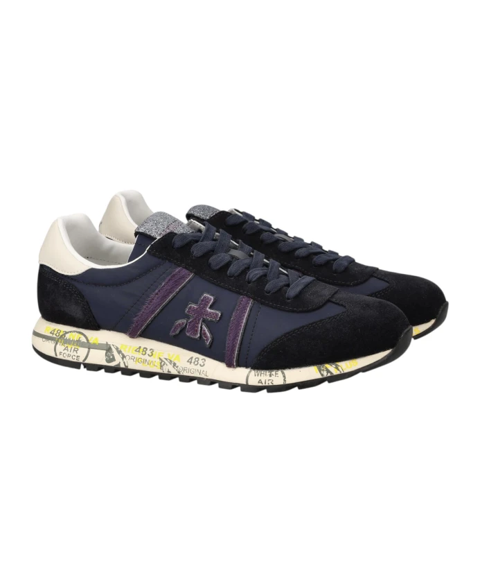 Бренд: Premiata Цвет: синий Материалы: подошва: 70% эва, 30% резина | верх: 58% полиамид (па), 22% телячья кожа, 10% конский волос (шерстяная телячья кожа), 10% полиуретан (пу) | подкладка: 86% козья кожа, 14% телячья кожа. ручная или машинная стирка; избегайте агрессивных моющих средств. сушите при комнатной температуре, избегая прямого воздействия тепла. бережно обращайтесь с деликатными видами кожи и поверхностями.