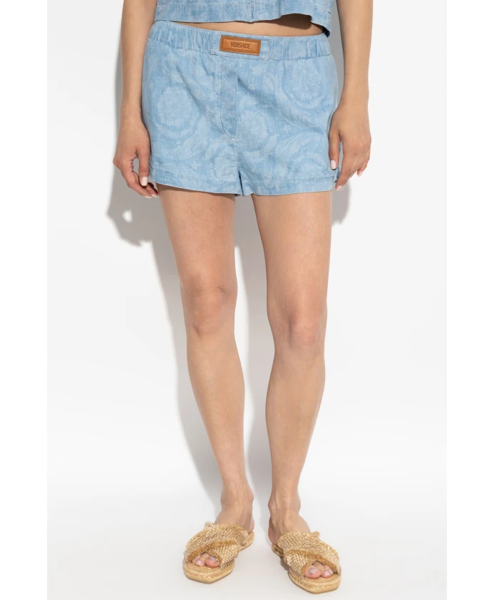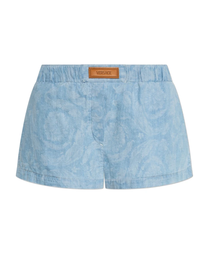 Джинсовые шорты Versace воплощают в себе суть итальянской элегантности и смелого стиля. Классический крой со слегка расклешенными штанинами деликатно подчеркивает женственный силуэт, обеспечивая при этом свободу движений. Роскошный деним с легкой, мягкой текстурой украшен светло-голубым мраморным эффектом и изысканным растительным мотивом, отсылающим к эстетике выстиранного денима с утонченным оттенком. Фирменной деталью является расположенная по центру кожаная нашивка с тисненым логотипом «VERSACE», предлагающая тонкий, но яркий знак престижа. Эластичный пояс обеспечивает исключительный комфорт и функциональность, делая эти шорты идеальным выбором для теплых летних дней. ПОЧЕМУ ВЫБРАТЬ ЭТОТ ПРОДУКТ? * Эксклюзивный дизайн от известного модного дома Versace * Легкий, высококачественный деним с мягкой текстурой * Элегантный мраморный мотив с растительными акцентами * Удобная посадка и функциональный эластичный пояс * Уникальные детали логотипа - гарантирующие подлинность. Параметры модели: рост 177 см, обхват груди 83 см, обхват талии 61 см, обхват бедер 89 см. Модель носит размер 27.