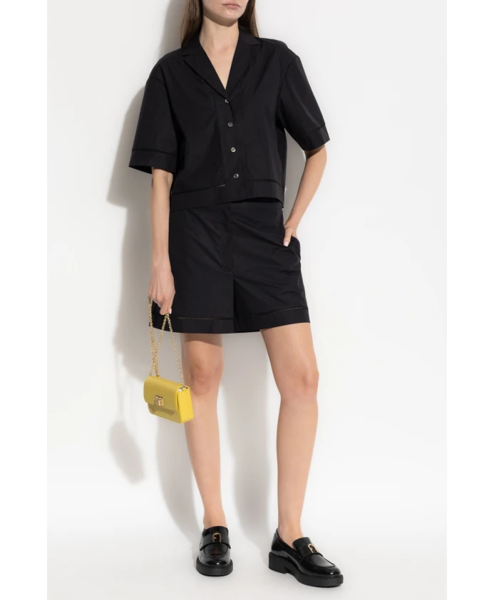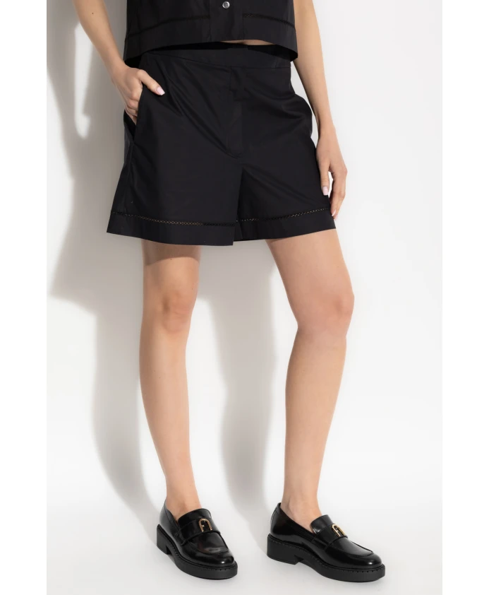 В этих черных шортах с высокой талией от Theory сочетаются шик и вневременная элегантность. Классический силуэт, слегка расклешенный по низу, излучает утонченную изысканность и комфорт, отвечая ожиданиям ценителей роскошной моды. Гладкая ткань из тончайшего хлопка с добавлением эластичных волокон обеспечивает удобство ношения и идеальную посадку. Шорты чисто черного цвета, без лишних украшений. Их минималистичный характер подчеркивается лишь тонкой кружевной отделкой внизу штанин, а также двумя практичными передними карманами и классическими задними карманами. Это воплощение современной роскоши, безошибочное выражение утонченной элегантности. ПОЧЕМУ ЭТОТ ТОВАР СТОИТ КУПИТЬ? * Изысканный, вневременной крой с завышенной талией * Эксклюзивные материалы, гарантирующие комфорт и долговечность * Уникальные кружевные детали по краям штанин * Универсальность и функциональность благодаря четырем карманам * Безупречное качество изготовления, отмеченное известным брендом Theory Параметры модели Рост: 177 см Обхват груди: 83 см Обхват талии: 61 см Обхват бедер: 89 см Модель носит размер: 4
