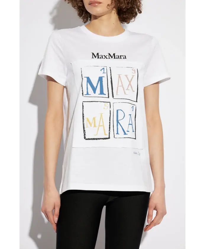 Представляем эксклюзивное творение итальянского модного дома MAX MARA - футболку COLIBRI. Эта изысканная футболка, изготовленная из высококачественного хлопка, впечатляет своей простотой и ярким узором, что делает ее поистине уникальной. Футболка преимущественно белого цвета украшена принтом с названием бренда «Max Mara» и графическим изображением карт с буквами «M», «A» и «X» синего, бежевого и желтого цветов. Классический крой с короткими рукавами и круглым вырезом обеспечивает вневременную элегантность, а мягкий материал гарантирует непревзойденный комфорт. Дополнительные детали, такие как едва заметные надписи внизу принта, подчеркивают уникальность дизайна, превращая эту футболку не просто в предмет одежды, а в произведение искусства. ПОЧЕМУ СТОИТ КУПИТЬ ЭТОТ ТОВАР? * Высококачественный хлопок обеспечивает комфорт и долговечность. * Яркий узор добавляет неповторимости. * Классический крой подходит к любому стилю. * Элегантность и престиж бренда Max Mara. Параметры модели: Рост: 176 см, Обхват груди: 85 см, Обхват талии: 60 см, Обхват бедер: 89 см. Модель носит размер: S.