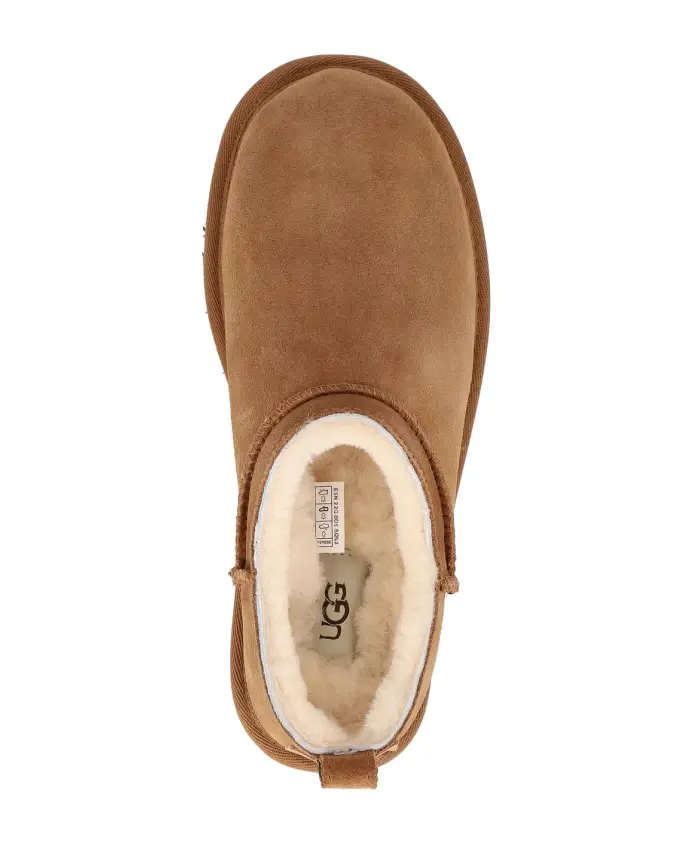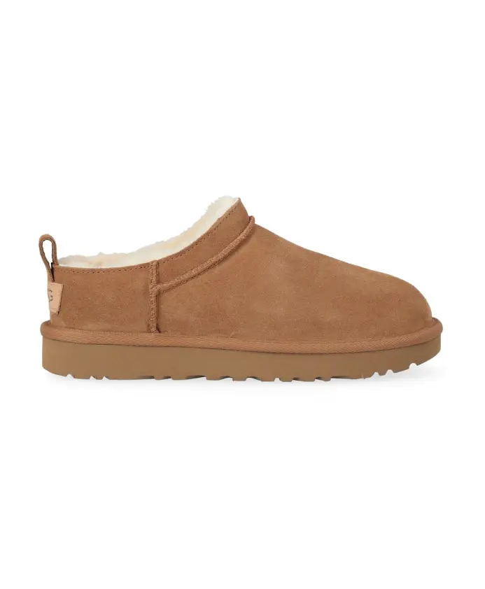 Классические микросапоги UGG переосмысливают культовый силуэт, представляя собой плоские, похожие на домашние тапочки, ботильоны. Они сочетают в себе замшевый верх с мягкой подкладкой из овчины и легкой подошвой из ЭВА, имитирующей сахарный тростник, для удобства и комфорта при ношении. Ключевые особенности: Коричневый | Каштановый | Замша | Водоотталкивающее покрытие | Подкладка из овчины, регулирующая температуру | Легкая подошва из ЭВА, имитирующей сахарный тростник | Конструкция без застежек | Петля на пятке | Логотип на пятке | Полиэстеровая отделка | Плоские ботильоны | Ощущение домашних тапочек | Верх из замши | Подкладка из овчины | Состав и уход: Верх из замши | Подкладка и стелька из овчины | Подошва из ЭВА, имитирующей сахарный тростник | Полиэстеровая отделка | Чистка пятен влажной тканью; при необходимости используйте средство для чистки замши или соответствующие средства по уходу; сушить на воздухе вдали от прямых источников тепла и солнечных лучей. Сапоги UGG поначалу сидят плотно, но со временем подкладка растянется. Рекомендуем выбирать свой обычный размер.