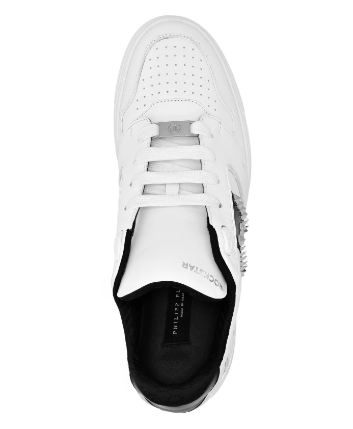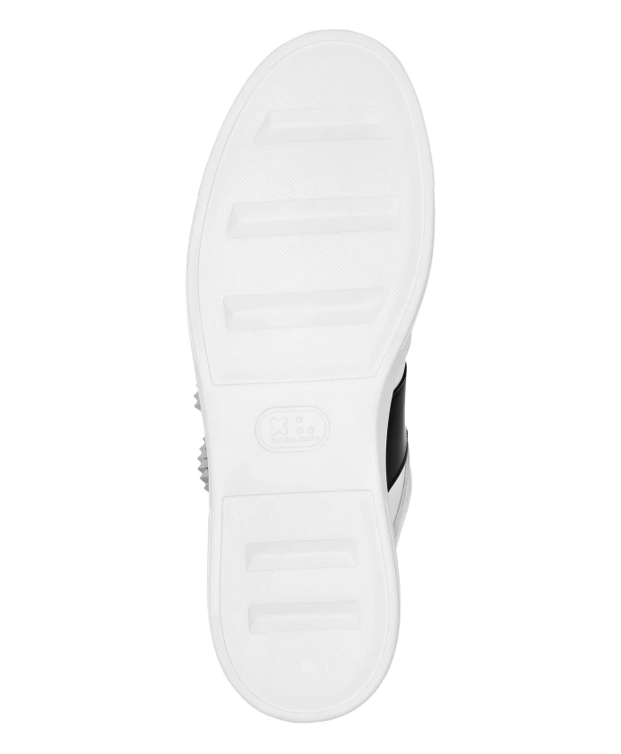 Кроссовки Philipp Plein Nappa Leather Lo-Top Sneakers с заклепками сочетают в себе двухцветный кожаный верх и фирменную фурнитуру, создавая эффектный повседневный образ. Отличительный ремешок с крокодиловым принтом, звездообразными заклепками и логотипом PP Hexagon придает им уникальный, привлекательный вид. Ключевые особенности: Белый | Черный | Кожа наппа | Высокотехнологичная, эргономичная, сверхлегкая, амортизирующая резиновая подошва | Формованная подошва для максимального сцепления | Мягкая подкладка из кожи наппа | Съемная стелька | Стабилизатор пятки | Контрастный кожаный ремешок с крокодиловым принтом и звездообразными заклепками | Логотип PP Hexagon на резиновой заднике | Контрастные резиновые детали | Никелированный спойлер на стабилизаторе пятки | Низкий силуэт | Состав и уход: Верх 1: 100% коровья кожа; Верх 2: 100% телячья кожа | Подкладка 1: 100% телячья кожа | Подкладка 2: 90% полиэстер, 10% эластан | Вставка 1: 100% акрилонитрилбутадиенстирол (АБС) | Вставка 2: 100% цинк (замак?) | Стелька 1: 100% синтетический каучук | Подошва 1: 100% синтетический каучук