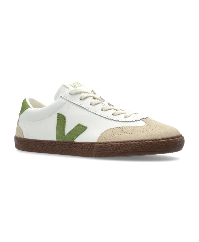 Кожаные кроссовки VOLLEY OT от VEJA воплощают в себе суть сдержанной элегантности и утонченного минимализма, созданные для женщин, ценящих вневременную элегантность. Гармоничное сочетание гладкой белой кожи и бархатистой бежевой замши подчеркивает эксклюзивность этой модели, а фирменная зеленая эмблема «V» по бокам и логотип на язычке и заднике являются безошибочными отличительными чертами бренда. Изящный силуэт и тщательно проработанный носок делают эти кроссовки чрезвычайно универсальными. Контрастная темно-коричневая резиновая подошва добавляет нотку современного характера и износостойкости. Приобретая этот продукт, вы выбираете не только изысканный дизайн, но и осознанный выбор, поддерживающий экологические ценности и принципы справедливой торговли. ПОЧЕМУ ЭТОТ ТОВАР СТОИТ КУПИТЬ? * Изготовлены из высококачественных, тщательно отобранных материалов * Уникальное сочетание кожи и замши, подчеркивающее роскошный стиль * Исключительный, узнаваемый дизайн VEJA * Прочная контрастная резиновая подошва * Подлинность и этичный подход бренда к производству. Высота подошвы: 2 см