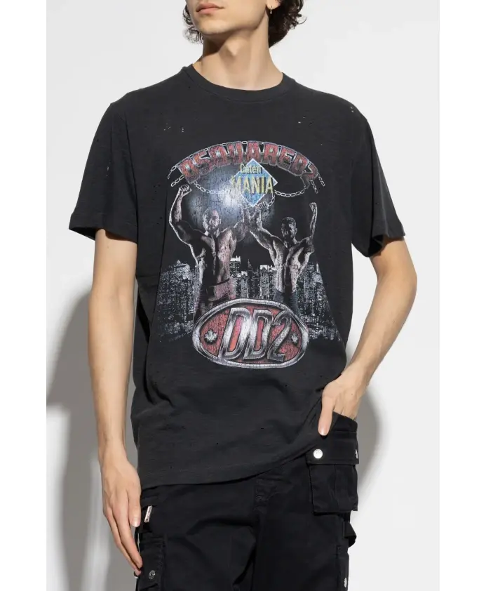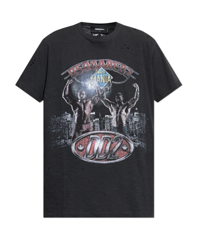 Представляем футболку с принтом от известного бренда Dsquared2, который с 1995 года покоряет своим уникальным стилем. Этот продукт - воплощение современного дизайна и художественного чутья, характерных для проектов братьев Катен. Темно-серая футболка украшена крупным красочным принтом на передней части, изображающим мускулистые силуэты на фоне городского пейзажа. Вверху красуется надпись "DSQUARED2 Catch Mania", а внизу гордо красуется логотип "DD2". Изготовленная из мягкой смеси хлопка и вискозы, она обеспечивает комфорт и свободу движений. Круглый вырез и короткие рукава подчеркивают повседневный стиль, а продуманные детали, такие как небольшие отверстия, добавляют неповторимого шарма. ПОЧЕМУ СТОИТ КУПИТЬ ЭТОТ ТОВАР? * Смелый и уникальный дизайн, привлекающий внимание. * Комфортный материал, идеально подходящий для любого случая. * Эксклюзивность бренда Dsquared2, признанная миром моды. * Стильный вид с эффектом потертости, добавляющий индивидуальности. Параметры модели: Рост: 193 см, Обхват груди: 95 см, Обхват талии: 82 см, Обхват бедер: 93 см. Модель носит размер: L.