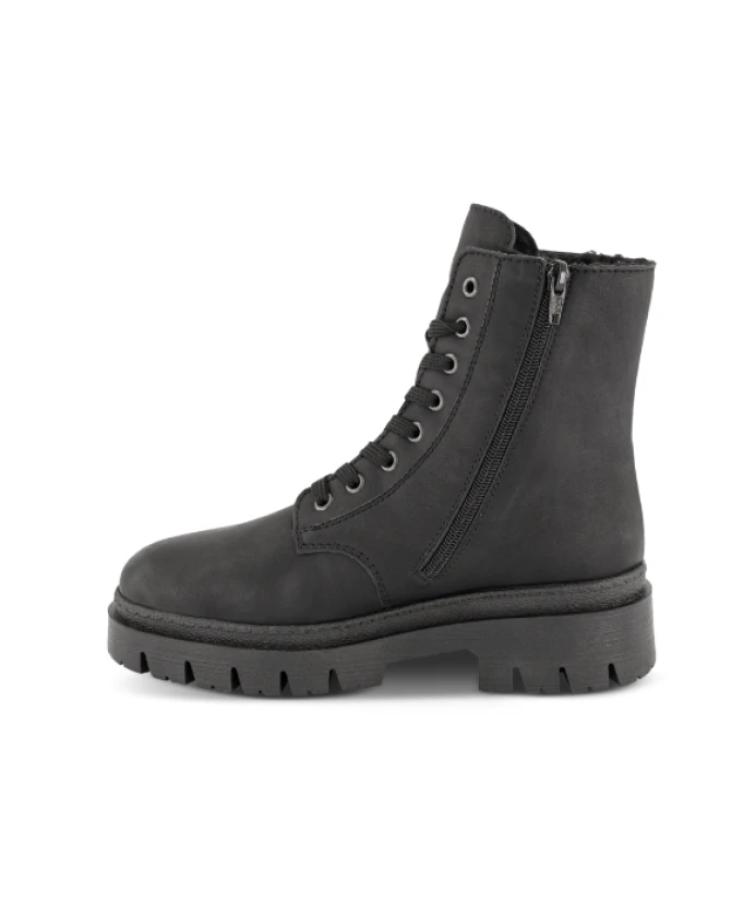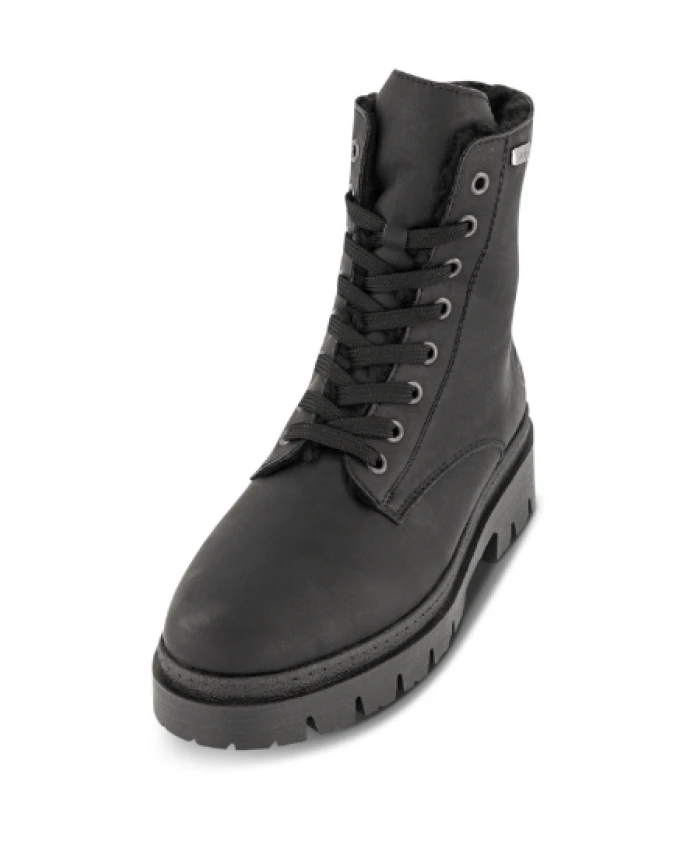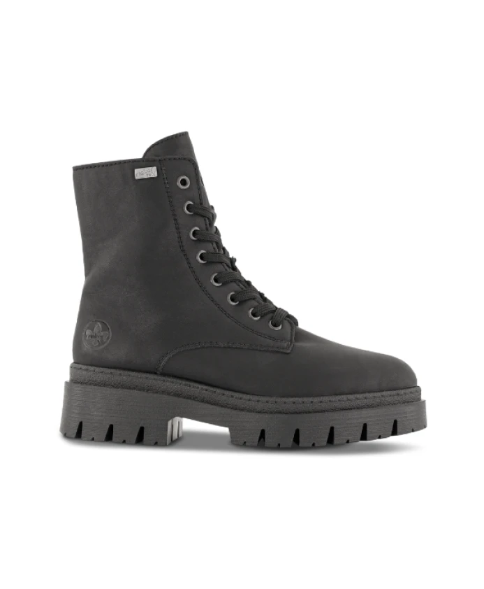 Байкерские ботинки Rieker сочетают в себе массивную платформенную подошву с водоотталкивающей защитой RiekerTEX и комфортом, предотвращающим перенапряжение, для теплой и сухой зимней носки. Шнуровка с боковой молнией и съемной стелькой позволяют легко регулировать размер и носить ботинки весь день. Ключевые особенности: Черный | Цвет | Синтетика | Водоотталкивающая (мембрана RiekerTEX) | Теплая, утепленная подкладка | Легкая, гибкая и комфортная подошва | Износостойкая подошва TR с хорошим сцеплением | Регулируемые шнурки | Боковая молния для удобного надевания и снимания | Съемная стелька | Платформенная подошва 52 мм | Массивный байкерский/боевой силуэт | Шнуровка спереди с боковой молнией | Теплая подкладка из искусственной кожи | Размеры и посадка: Высота каблука: 52 мм | Высота голенища: 15 см | Комфортная ширина F (обычная ширина) | Стандартная посадка | Состав и уход: Верх: Синтетика (искусственная кожа) | Подкладка: Текстиль (теплая подкладка + мембрана RiekerTEX) | Стелька: Текстиль | Внутренняя стелька: Съемная текстильная стелька | Подошва: TR (синтетическая)