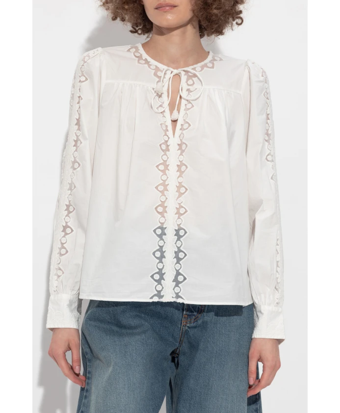 Топ "KADY" от Уллы Джонсон - это гармоничное сочетание изысканности и богемного художественного духа. Нежный, высококачественный хлопок создает прозрачную структуру, которая мягко обволакивает кожу и обеспечивает исключительный комфорт. Продуманные детали, такие как слегка свободный крой, приспущенные плечи и длинные рукава с элегантными манжетами, придают блузке ощущение чувственной легкости. Центральным элементом этого творения является круглый вырез с изысканным разрезом, украшенный роскошными кисточками, которые грациозно покачиваются при каждом движении. Изысканные вышитые геометрические мотивы украшают рукава, вырез и центр блузки, создавая уникальный эффект тонкой ажурной работы. ПОЧЕМУ ЭТОТ ТОВАР СТОИТ КУПИТЬ? * Исключительное качество хлопка и ручная вышивка * Чрезвычайно удобный, универсальный крой для любой фигуры * Фирменное видение известного дизайнера Уллы Джонсон * Уникальное сочетание классической элегантности и художественного стиля. Параметры модели: Рост: 177 см, Обхват груди: 83 см, Обхват талии: 61 см, Обхват бедер: 89 см. Модель носит размер: 40.
