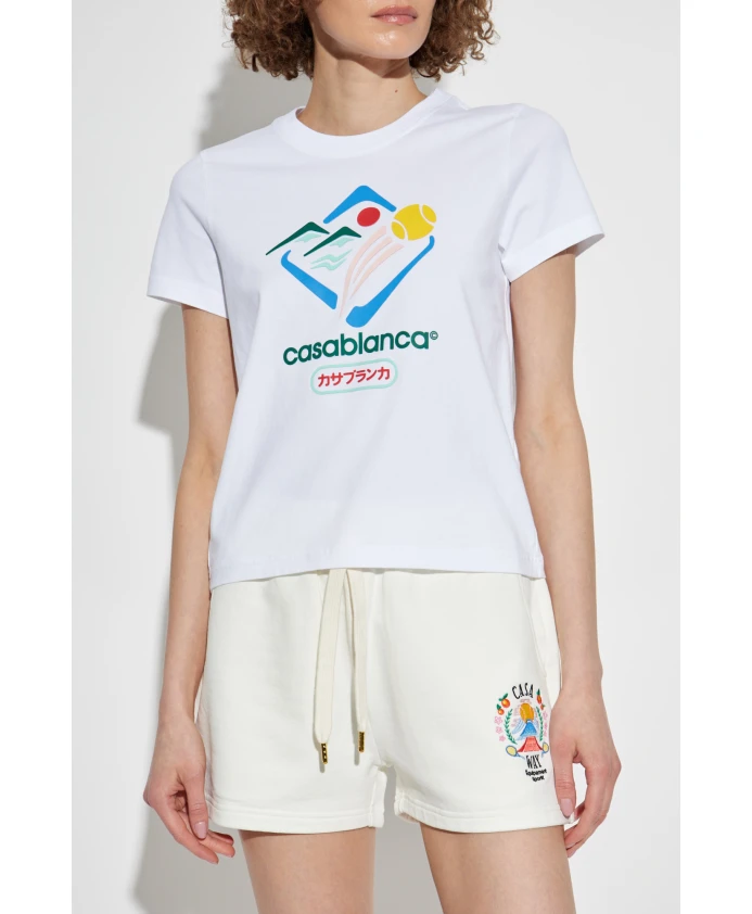 Футболка с логотипом CASABLANCA воплощает в себе сдержанную роскошь и современную эстетику. Классический, слегка укороченный крой с короткими рукавами и изысканным круглым вырезом идеально подчеркивает силуэт и придает универсальность любому образу. Изготовленная из высококачественного хлопка, она отличается исключительной мягкостью и комфортом. Передняя часть футболки украшена ярким художественным принтом, вдохновленным мотивами спортивной элегантности - динамичные линии, стилизованный пейзаж и узнаваемый логотип с надписью «casablanca» объединяются, создавая гармоничную композицию, вызывающую ассоциации со средиземноморской роскошью. Дополнительная деталь в виде японского иероглифа подчеркивает уникальность дизайна. ПОЧЕМУ ВЫБРАТЬ ЭТОТ ТОВАР? * Эксклюзивное качество материала - только хлопок * Уникальный, узнаваемый дизайн с художественным логотипом * Крой, сочетающий комфорт и вневременную элегантность * Вдохновлено мировым стилем и роскошными курортами Параметры модели Рост: 176 см Обхват груди: 85 см Обхват талии: 60 см Обхват бедер: 89 см Модель носит размер: S