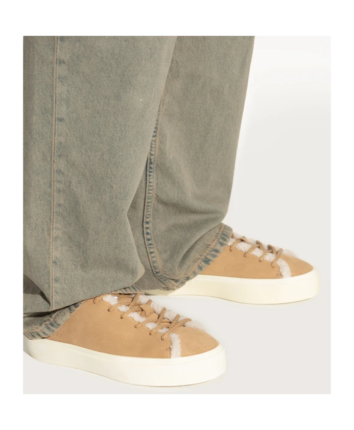 Низкие кроссовки SHEARLING LOW от Inuikii излучают вневременную элегантность и воплощают в себе суть изысканного стиля и исключительного комфорта. Чистый, однородный силуэт подчеркивает классический характер низких кроссовок, а декоративная строчка и мягкая отделка из овчины ненавязчиво выделяют уникальную особенность модели. Верх, выполненный из высококачественной бежевой замши, прекрасно гармонирует с внутренней отделкой и краями, отделанными овчиной, обеспечивая непревзойденное ощущение мягкости и тепла. Изящный тисненый логотип и сдержанные фирменные этикетки подчеркивают роскошный характер изделия. Легкая кремовая резиновая подошва обеспечивает легкость, теплоизоляцию и долговечность, а классическая система шнуровки с элегантными бежевыми шнурками завершает общий дизайн. ПОЧЕМУ СТОИТ ВЫБРАТЬ ЭТОТ ТОВАР? * Высококачественные натуральные материалы - овечья кожа и овчина * Роскошная ручная работа * Исключительный комфорт и вневременной стиль * Изысканные детали, подчеркивающие эксклюзивность * Прочная подошва для повседневного комфорта. Высота подошвы: 3,5 см