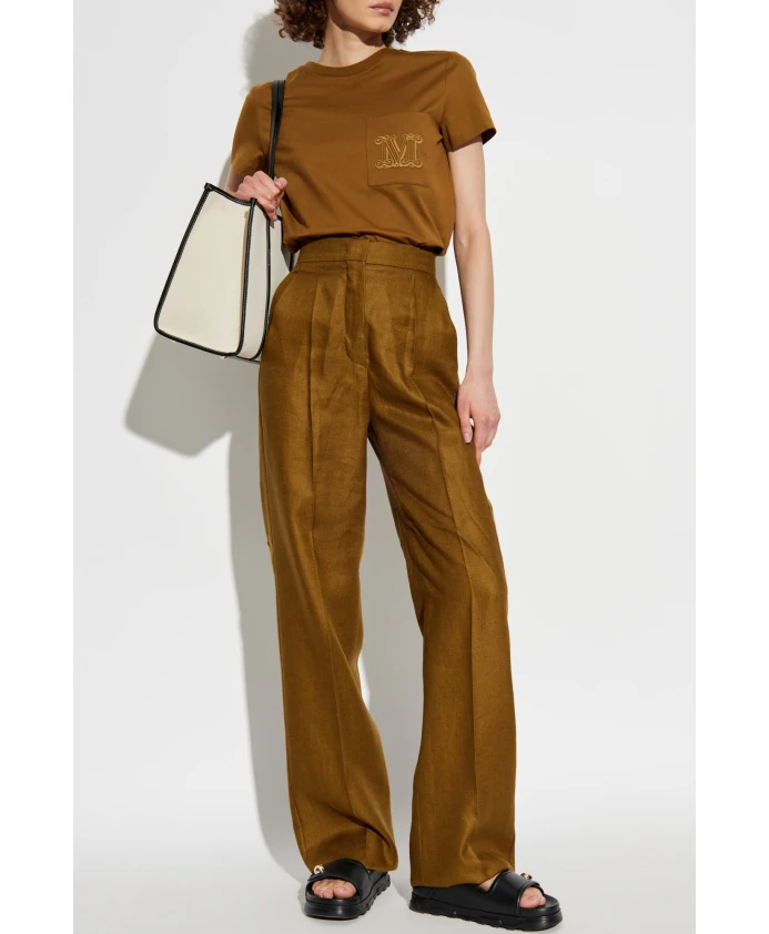 Представляем футболку «PAPAIA» из эксклюзивной коллекции Max Mara, сочетающую в себе вневременную элегантность и современный стиль. Эта коричневая футболка, изготовленная из высококачественного хлопка, имеет гладкую поверхность и классический короткий рукав, что делает ее идеальным дополнением к любому гардеробу. Незаметный нагрудный карман украшен бежевой вышитой буквой «M», которая тонко контрастирует с остальной тканью, добавляя неповторимый шарм. Как часть итальянского наследия бренда, эта футболка идеально воплощает философию роскоши и качества, которой славится Max Mara. ПОЧЕМУ СТОИТ КУПИТЬ ЭТОТ ТОВАР? * Однотонный коричневый цвет идеально дополняет различные стили. * Изготовлена из высококачественного хлопка, что гарантирует комфорт. * Декоративный логотип добавляет индивидуальности и элегантности. * Универсальность позволяет носить ее в различных случаях, от повседневных до официальных. * Рекомендовано известным модным домом Max Mara. Параметры модели: Рост: 176 см, Обхват груди: 85 см, Обхват талии: 60 см, Обхват бедер: 89 см. Модель носит размер: S.