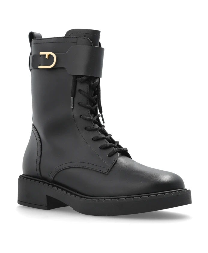 Ботильоны Furla 'NEW LEGACY' воплощают изысканную элегантность и классическую эстетику в вневременном стиле. Их простой силуэт до щиколотки с немного удлиненным верхом подчеркивает утонченность, а прочная конструкция обеспечивает непревзойденный комфорт. Исключительная ценность этой модели заключается в использовании кожи с матовой, однородной отделкой. Это придает ботильонам роскошный, но в то же время брутальный характер. Минималистичный дизайн, основанный на идеальной прошивке и лишенный лишних украшений, впечатляет своей утонченной простотой. Престижный характер подчеркивает ремешок с металлической золотой пряжкой. Деталь, воплощающая мастерство, а плоская резиновая подошва обеспечивает тонкий баланс между стилем и комфортом. ПОЧЕМУ СТОИТ КУПИТЬ ЭТОТ ТОВАР? * Исключительное качество натуральных материалов * Изысканный, минималистичный дизайн * Вневременной и универсальный стиль * Точное исполнение, характерное для итальянского мастерства * Оригинальная деталь - металлическая золотая пряжка. Высота подошвы: 0,5 см. Высота каблука: 5,5 см.