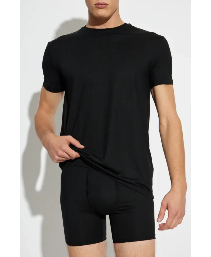 Футболка DSQUARED2 Lingerie - это воплощение современной элегантности, основанное на минималистичной эстетике. Классический дизайн с короткими рукавами и круглым вырезом ненавязчиво подчеркивает силуэт благодаря продуманному крою. Роскошный, легкий трикотаж, изготовленный из гармоничного сочетания модала и эластана, обладает исключительной мягкостью и эластичностью, гарантируя максимальный комфорт. Идеально гладкая поверхность, лишенная лишних украшений, подчеркивает аскетический характер дизайна, а изысканный штрих добавляет логотип DSQUARED2 MILANO UNDERWEAR на затылке - тонкий намек для взыскательных ценителей моды. ПОЧЕМУ СТОИТ КУПИТЬ ЭТОТ ТОВАР? * Изысканный минимализм и универсальность * Исключительная мягкость и эластичность ткани для максимального комфорта * Разработано известными канадскими дизайнерами * Идеальная посадка для повседневной носки и отдыха * Уникальный логотип, подчеркивающий эксклюзивный характер изделия Параметры модели Рост: 185 см Обхват груди: 92 см Обхват талии: 74 см Обхват бедер: 91 см Модель носит размер: L