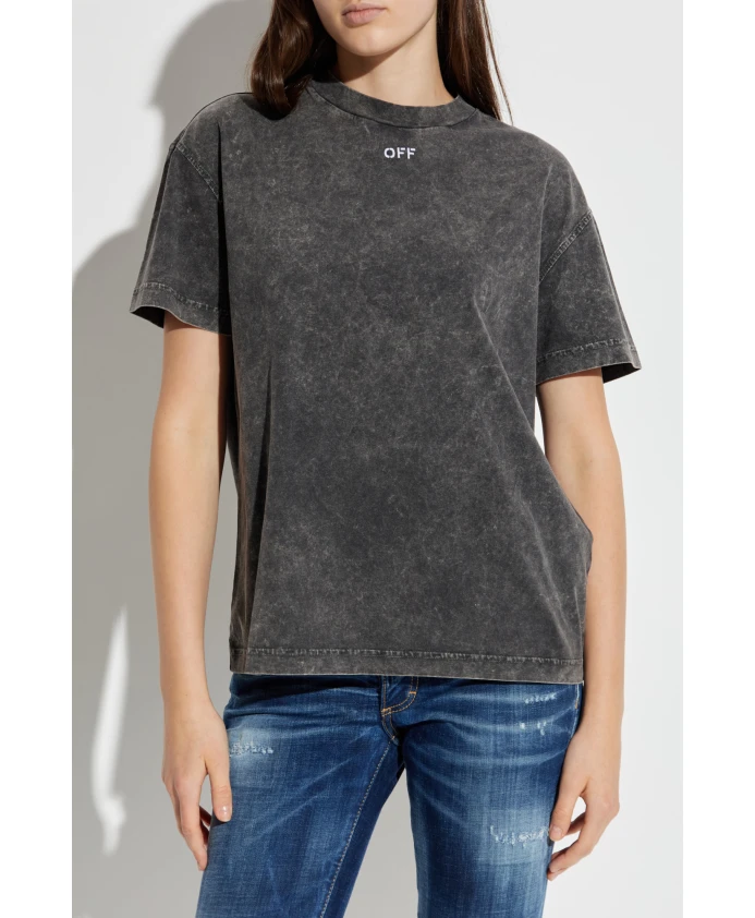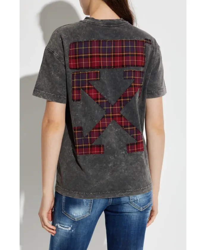 Футболка LOGO от Off-White - отличный выбор для женщин, ценящих утонченную непринужденность. Роскошно мягкий хлопковый трикотаж серого цвета с винтажным эффектом перенесет вас в мир изысканной эстетики, где детали играют ключевую роль. Классический, слегка свободный крой гармонично сочетает комфорт и оригинальный стиль. Это подчеркивают короткие рукава и слегка закругленный вырез горловины, отделанный тщательно выполненными ребристыми манжетами. Спереди футболка украшена контрастным вышитым логотипом бренда, а на спине - ярким геометрическим клетчатым узором - смелой, узнаваемой деталью, вдохновленной современной культурой. ПОЧЕМУ СТОИТ КУПИТЬ ЭТОТ ТОВАР? * Элегантный, слегка винтажный вид из высококачественного хлопка. * Уникальные украшения - вышитый логотип и геометрическая клетчатая аппликация. * Исключительный дизайн от иконы моды - Off-White. * Эффектный крой, обеспечивающий комфорт и свободу движений. Параметры модели: Рост: 176 см, Обхват груди: 85 см, Обхват талии: 60 см, Обхват бедер: 89 см. Модель носит размер: S.