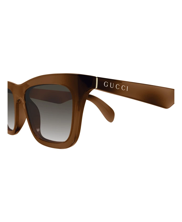 Прямоугольные солнцезащитные очки Gucci сочетают в себе классический прямоугольный силуэт и отделку под черепаховую панцирь цвета «Гавана», обеспечивая повседневную защиту от солнца и изысканный городской образ. Ключевые особенности: Коричневый | Гавана | Литье под давлением | 100% защита от UVA/UVB-лучей | Градиентные линзы | В комплекте защитный футляр | Заушники с логотипом | Прочная литая конструкция оправы | Прямоугольная оправа | Отделка под черепаховую панцирь цвета «Гавана» | Незаметный логотип Gucci на заушниках | Металлическая деталь на шарнире | Размеры и посадка: Длина заушника: 14,5 см | Высота линзы: 3,8 см | Ширина переносицы: 1,8 см | Высота оправы: 4,7 см | Ширина оправы: 14,4 см | Расстояние между шарнирами: 13 см | Размер оправы: 53-18-145 мм | Состав и уход: Литье под давлением. Хранить в прилагаемом футляре. Чистить мягкой сухой тканью. При необходимости использовать влажную ткань с мягким моющим средством. Не используйте растворители (например, спирт, ацетон) или агрессивные чистящие средства.