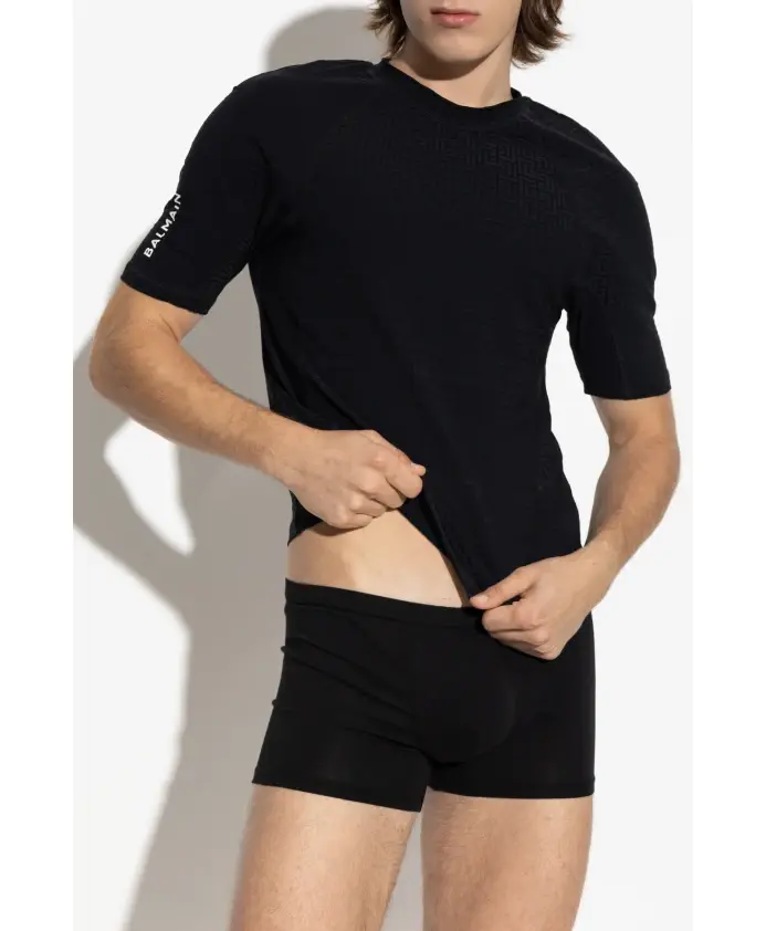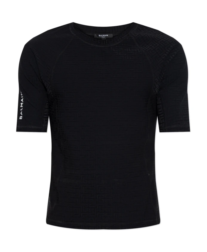 Футболка BALMAIN MONOGRAM воплощает в себе суть современной элегантности с оттенком спортивной изысканности. Классический облегающий силуэт с короткими рукавами подчеркивает фигуру, а искусно расположенный тисненый монограмм создает тонкий геометрический узор, характерный для домов моды класса люкс. Высококачественная ткань с гладкой, эластичной текстурой, искусно выполненные швы и заметный вертикальный логотип дизайнера на левом рукаве идеально сочетаются, обеспечивая комфорт и неповторимый характер. Эта вещь объединяет современный минимализм с вневременным мастерством парижской традиции Balmain. ПОЧЕМУ СТОИТ ВЫБРАТЬ ЭТОТ ТОВАР? * Исключительная монограмма на роскошной тисненой ткани * Идеальная посадка благодаря эластичным волокнам * Логотип Balmain, намекающий на престижное наследие * Тщательная обработка и высокое качество. Долговечность материала * Минималистичный, но выразительный стиль. Параметры модели: Рост: 193 см, Обхват груди: 95 см, Обхват талии: 82 см, Обхват бедер: 93 см. Модель носит размер: L
