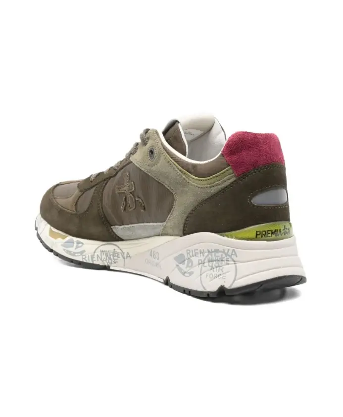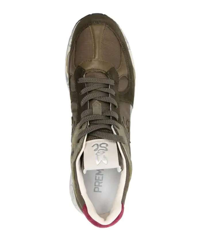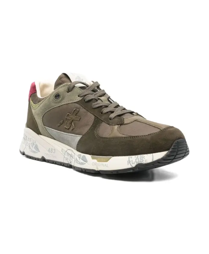 Бренд: Premiata Цвет: зеленый Материалы: подошва: 30% резина, 65% эва, 5% тпу | верх: 20% свиная кожа, 10% овечья кожа наппа, 15% телячья кожа, 53% полиамид, 2% полиуретан | подкладка: 86% козья кожа, 14% телячья кожа. избегайте чистящих средств, которые могут изменить внешний вид. в случае намокания сушите при комнатной температуре и избегайте прямых источников тепла. обращайтесь бережно, чтобы сохранить обработку и отделку.