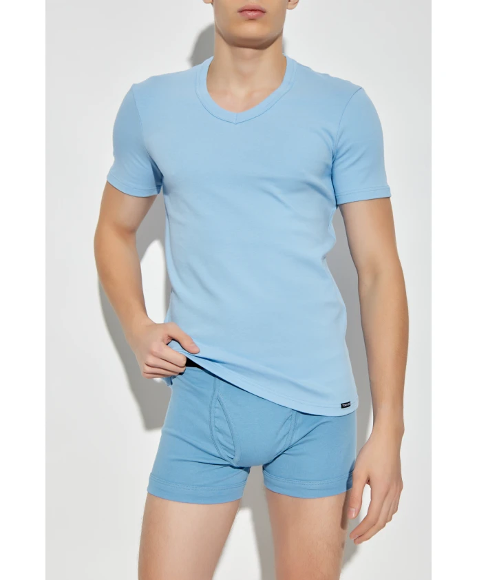 Футболка Tom Ford Lingerie с V-образным вырезом - это изысканная повседневная футболка из гладкого эластичного хлопкового трикотажа. Минималистичный V-образный вырез и мягкая вязка делают ее идеальной для создания элегантных многослойных образов и повседневной носки. Ключевые особенности: Синий | Светло-синий | Хлопок | Эластичный хлопковый трикотаж | Мягкая на ощупь | Эластичная ткань | Дышащий трикотаж | Легко сочетается с другой одеждой | Универсальная для повседневной носки | V-образный вырез | Короткие рукава | Облегающий силуэт | Сдержанная черная этикетка с белым логотипом TOM FORD по низу | Тщательная обработка швов | Минималистичный дизайн | Размеры и посадка: Размеры модели - Рост: 185 см | Размеры модели - Грудь: 92 см | Размеры модели - Талия: 74 см | Размеры модели - Бедра: 91 см | Модель носит размер: L | Классический крой | Состав и уход: 95% хлопок | 5% эластан | Машинная стирка при 30°C, не отбеливать, гладить при низкой температуре, не подвергать химчистке, не сушить в сушильной машине.