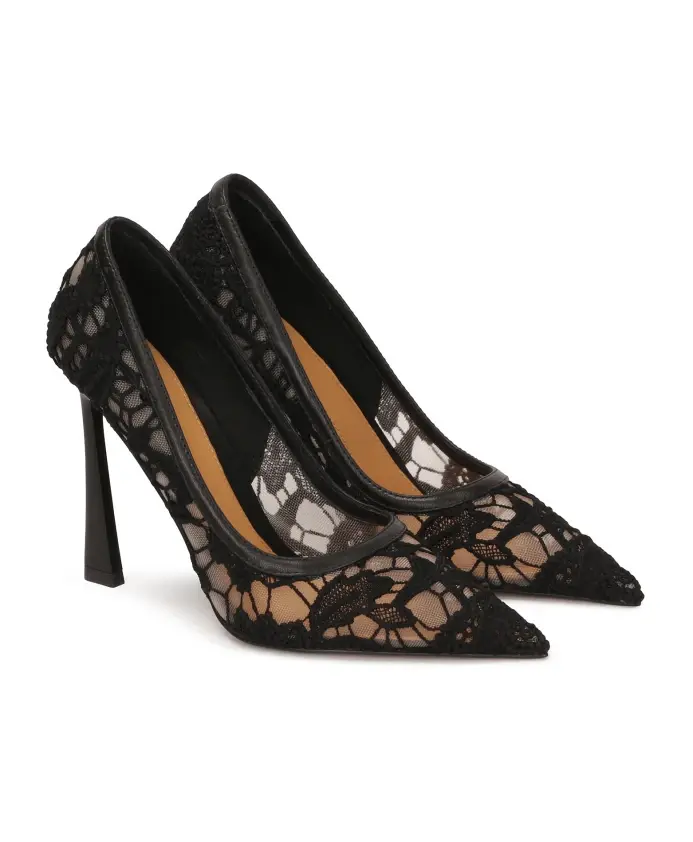 Элегантные вечерние туфли на высоком каблуке - воплощение утонченного стиля и женственности. Эта модель впечатляет классическим кроем, который подчеркивает стройность стопы благодаря заостренному носку, придающему туфлям элегантность и утонченную чувственность. Верх, выполненный из черного кружева с нежным цветочным узором, - настоящее произведение искусства, сочетающее в себе изящество и романтическое очарование. Кружево придает туфлям легкость, одновременно привлекая внимание своей замысловатой детализацией. Каблук, отделанный натуральной кожей, не только укрепляет конструкцию обуви, но и добавляет элегантности, обеспечивая при этом комфорт и долговечность. Эти туфли - отличный выбор для особых случаев, таких как вечерние гала-вечера, вечеринки или романтические ужины. Они созданы для женщин, которые хотят сочетать роскошь с вневременным стилем. Мягкая подкладка из полуанилиновой овчины гарантирует исключительный комфорт. Подошва из туниковой кожи отличается прочностью и эстетичным внешним видом.