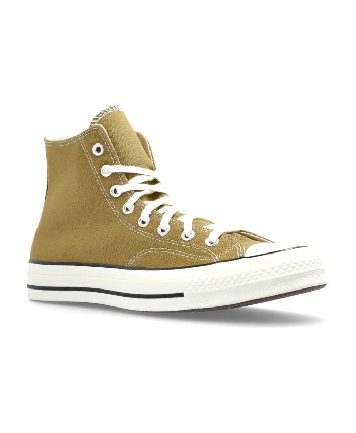Кроссовки «CHUCK 70 HI» - это воплощение нестареющей классики. Изящный высокий силуэт выше щиколотки и однотонный оливково-зеленый верх подчеркивают утонченный минималистичный стиль. Внешняя и внутренняя части выполнены из тщательно отобранного текстильного канваса, известного своей прочностью и исключительной воздухопроницаемостью, что обеспечивает комфорт даже при ношении в течение всего дня. Белые шнурки и контрастная строчка гармонично дополняют классическую резиновую подошву с черной полосой - фирменную деталь линии Chuck 70. Также стоит отметить круглую нашивку с логотипом «Converse All Star» и незаметную черную этикетку бренда на пятке. Белый резиновый носок завершает образ, добавляя спортивный штрих к этому элегантному дизайну. ПОЧЕМУ ВЫБРАТЬ ЭТОТ ТОВАР? * Исключительная прочность и воздухопроницаемость канваса * Вневременной, универсальный силуэт * Культовые детали бренда Converse * Изящный, однотонный зеленый цвет * Превосходный комфорт в течение всего дня * Высота подошвы: 3 см