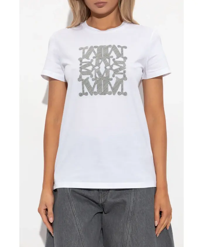 Футболка “BRAVO” от Max Mara органично сочетает классическую элегантность с современным силуэтом. Тщательно скроенная, она впечатляет своим стандартным кроем, круглым вырезом и короткими рукавами, которые деликатно подчеркивают фигуру. Чисто-белая, высококачественная гладкая ткань служит изысканным фоном для эффектного вышитого мотива серебристо-серых тонов, расположенного по центру груди. Многомерная геометрическая надпись отсылает к уникальной эстетике бренда и придает футболке выразительность без излишней вычурности. Мастерская вышивка не только обеспечивает долговечность, но и придает изделию неповторимый, роскошный характер. ПОЧЕМУ ВЫБРАТЬ ЭТОТ ТОВАР? * Высококачественная натуральная ткань для максимального комфорта * Эксклюзивное мастерство - вышивка вместо печати * Универсальная, вневременная элегантность * Оригинальный дизайн, отражающий философию бренда Max Mara. Параметры модели: Рост: 176 см, Обхват груди: 85 см, Обхват талии: 60 см, Обхват бедер: 89 см. На модели размер: S
