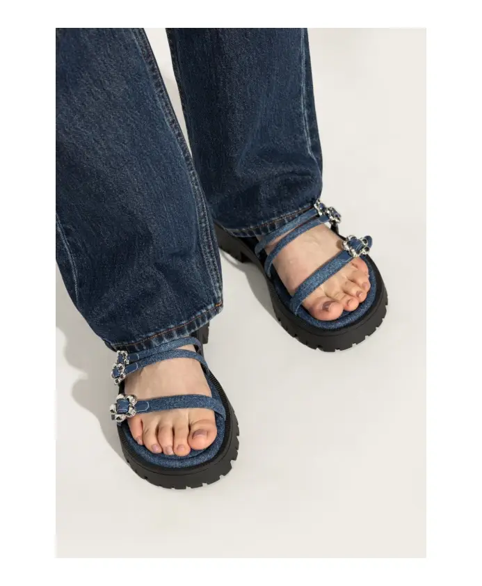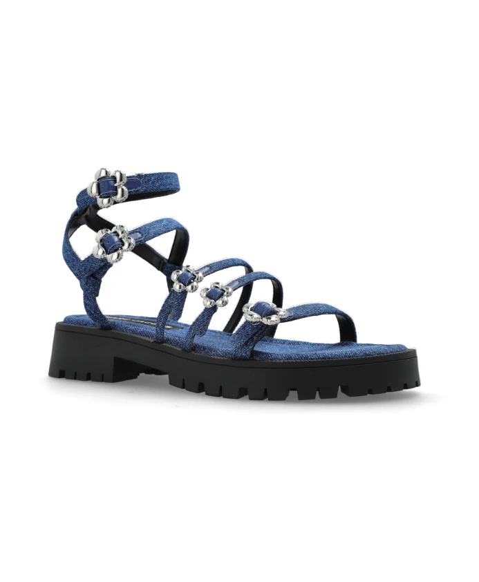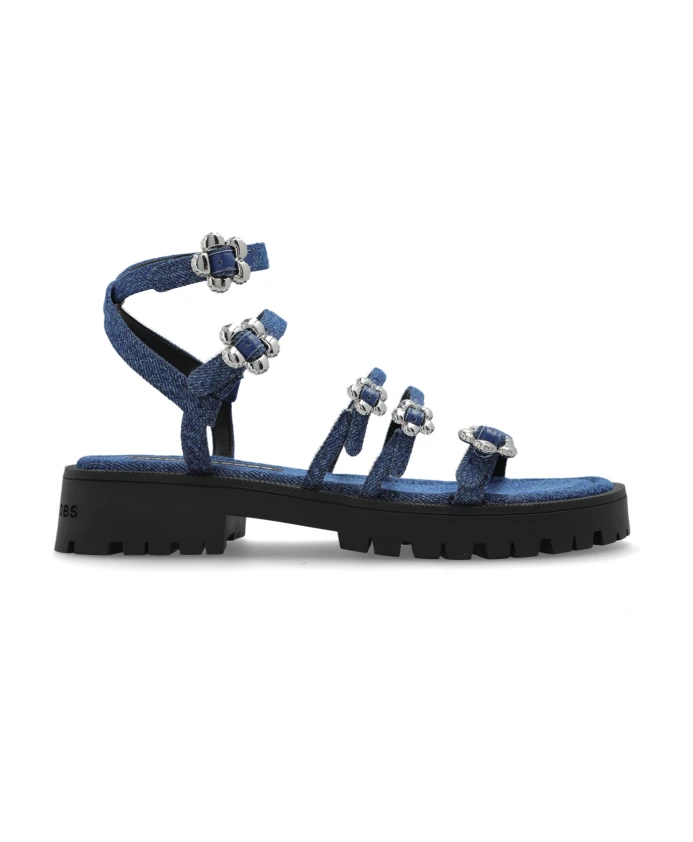 Сандалии DAISY от известного дизайнера Марка Джейкобса воплощают современную элегантность, органично сочетая классический стиль и изысканность. Гармоничное сочетание синего денима на ремешках и стельке, в паре с массивной, смелой, профилированной подошвой, подчеркивает современный характер этих сандалий, сохраняя при этом ощущение утонченной легкости. Каждая деталь завораживает - блестящие пряжки в форме стилизованных цветов и изящные аппликации добавляют нотку утонченности. Тщательно представленный логотип «MARC JACOBS» на стельке и задней части подошвы свидетельствует об эксклюзивном происхождении этого изделия. ПОЧЕМУ ВЫБРАТЬ ЭТОТ ТОВАР? * Уникальный дизайн, вдохновленный современным авангардом и вневременной классикой * Премиальный материал с современным характером * Массивная подошва для комфорта и долговечности * Отличительные цветочные пряжки и детали, добавляющие роскоши * Фирменный знак эксклюзивного бренда Marc Jacobs. Высота подошвы в самой высокой точке: 5 см.