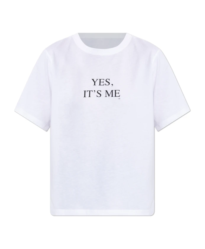 Футболка с принтом от Виктории Бекхэм - это воплощение утонченной элегантности в сочетании с современным взглядом на классический стиль. Она выполнена из мягкого, нежного хлопка со слегка матовой поверхностью, что обеспечивает непрозрачность и исключительный комфорт. Слегка свободный крой, короткие и расслабленные рукава, а также округлый вырез с мягкой ребристой отделкой подчеркивают непринужденный, но в то же время изысканный характер изделия. Центральный принт с черной надписью «YES, IT'S ME» придает дизайну уникальную смелость, а деликатная фирменная деталь «VB», спрятанная в нижнем углу, подчеркивает эксклюзивность этой вещи. ПОЧЕМУ СТОИТ КУПИТЬ ЭТОТ ТОВАР? * Высококачественная, приятная на ощупь ткань * Оригинальный принт и ненавязчивый дизайнерский знак * Уникальный классический крой с современными элементами * Элегантность от знаменитой Виктории Бекхэм Параметры модели Рост: 177 см Обхват груди: 83 см Обхват талии: 61 см Обхват бедер: 89 см Модель носит размер: S