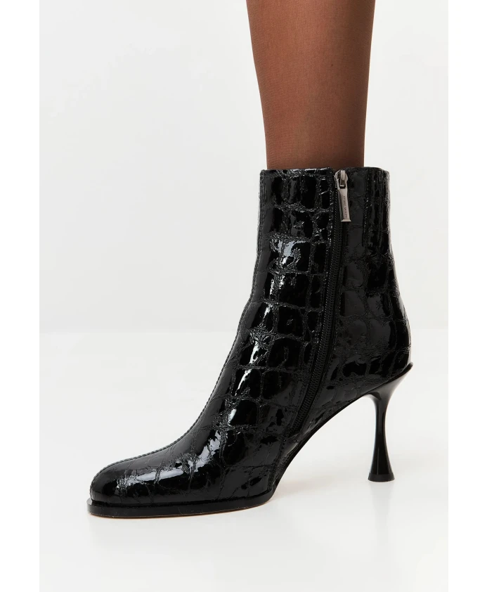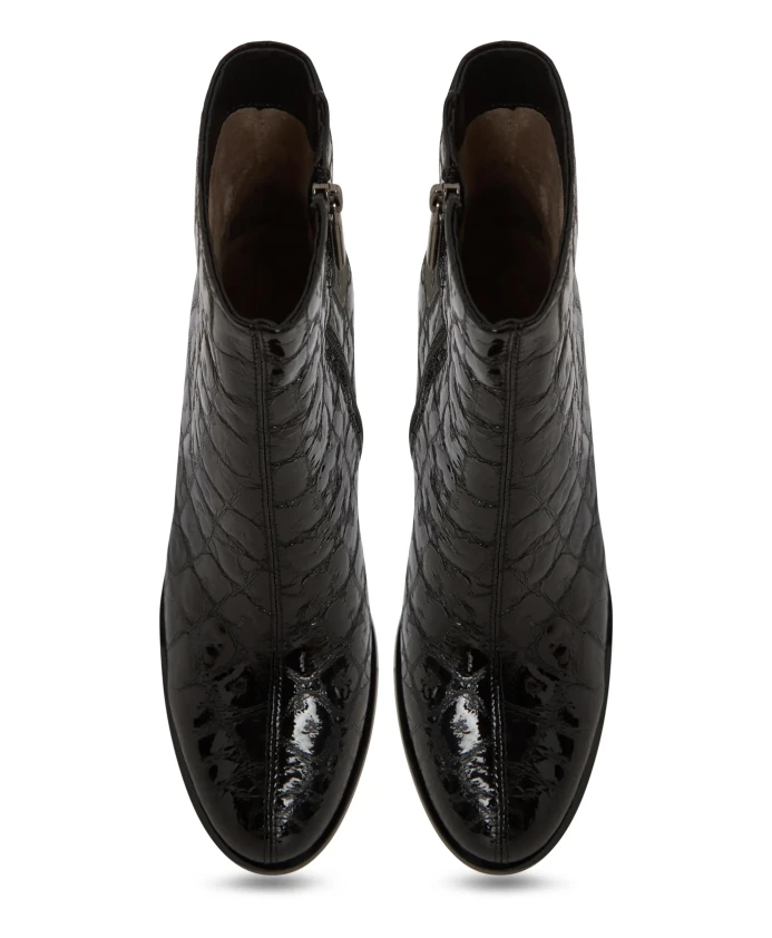 Эффектные и скульптурные, ботильоны Croc Noir на шпильке отличаются смелой текстурой и элегантными линиями. Верх из тисненой крокодиловой кожи с глянцевой отделкой и острый каблук-шпилька воплощают в себе дикую элегантность и утонченную современность. Эта модель имеет широкую колодку; мы рекомендуем выбирать на один размер меньше. Материал: Кожа. Подкладка: Кожаная подкладка. Тип амортизации: Слегка мягкая стелька. Тип каблука: Шпилька. Высота каблука: 9 см. Высота платформы: Отсутствует. Посадка: Широкая. Инструкции по уходу: Для правильного ухода за кожей защищайте ее от воздействия окружающей среды, регулярно чистите и периодически обрабатывайте кондиционером. Избегайте длительного воздействия солнечных лучей, тепла и воды, а также будьте осторожны с возможными пятнами от чернил, масел или темных тканей. Детали: Глянцевый верх с тиснением под крокодиловую кожу, заостренный носок, скульптурный каблук-шпилька, внутренняя молния, эффектная отделка с роскошной текстурой.