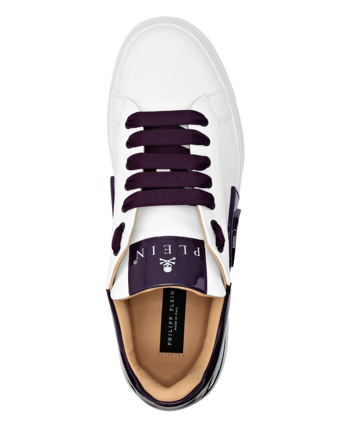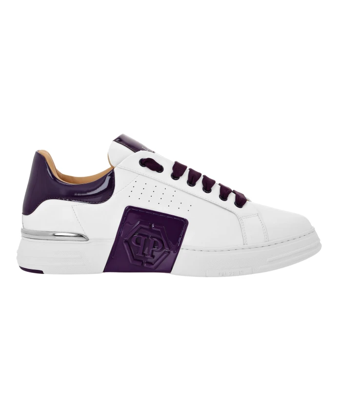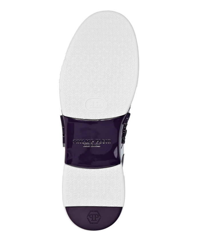 Низкие кроссовки Philipp Plein Phantom Kicks сочетают в себе верх из телячьей кожи наппа с контрастными деталями из лакированной кожи и высокотехнологичную амортизирующую подошву для легкости, сцепления и комфорта на каждый день. Ключевые особенности: Белый | Фиолетовый | Телячья кожа | Высокотехнологичная, эргономичная, сверхлегкая подошва | Амортизирующая резиновая подошва | Формованная подошва для максимального сцепления | Боковые вентиляционные отверстия | Мягкая подкладка из кожи наппа | Съемная стелька | Эластичная лента от подошвы до боковой части | Двухцветный низкий силуэт | Контрастные детали из лакированной кожи | Шестиугольный акцент из полипропилена на эластичной ленте | Мягкая подкладка в области щиколотки и язычка | Состав и уход: Верх: 100% телячья кожа | Верх (лакированная кожа/детали): 65% полиуретан, 35% полиэстер | Подкладка 1: 100% коровья кожа | Подкладка 2: 100% овечья кожа. Стелька: 100% синтетический каучук. Подошва: 100% синтетический каучук.