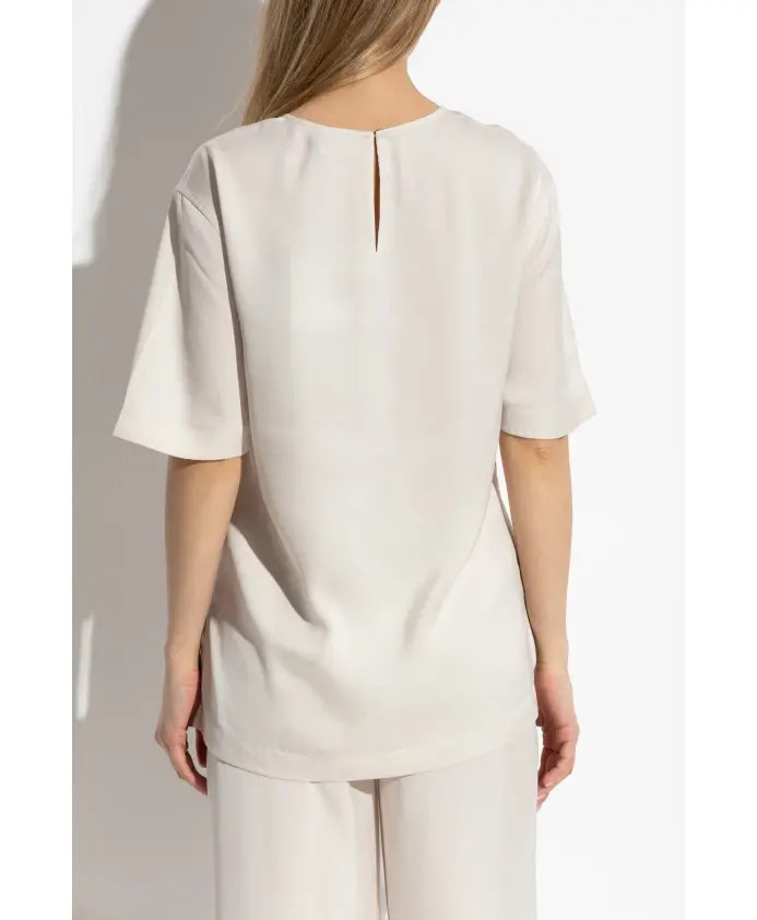 Представляем топ «AMELIE» из эксклюзивной коллекции AllSaints - синоним элегантности и современности. Этот кремовый топ простого кроя с короткими рукавами изготовлен из изысканного полиэстера, имитирующего мягкость шелка и придающего ему легкий блеск. Исключительная деталь в виде разреза на спине с застежкой придает ему утонченность, а универсальный кремовый цвет делает его идеальным как для торжественных случаев, так и для элегантных повседневных образов. Топ «Amelie» в сочетании с соответствующими брюками создает цельный монохромный образ, очаровывающий своей простотой и элегантностью. ПОЧЕМУ СТОИТ КУПИТЬ ЭТОТ ТОВАР? * Изысканный дизайн от известного бренда AllSaints. * Элегантный кремовый цвет, дополняющий различные стили. * Изготовлен из материала с легким блеском, гарантирующим легкость. * Детали, добавляющие класс и неповторимый характер. Параметры модели: Рост: 176 см, Обхват груди: 85 см, Обхват талии: 60 см, Обхват бедер: 89 см. Модель носит размер: 8.