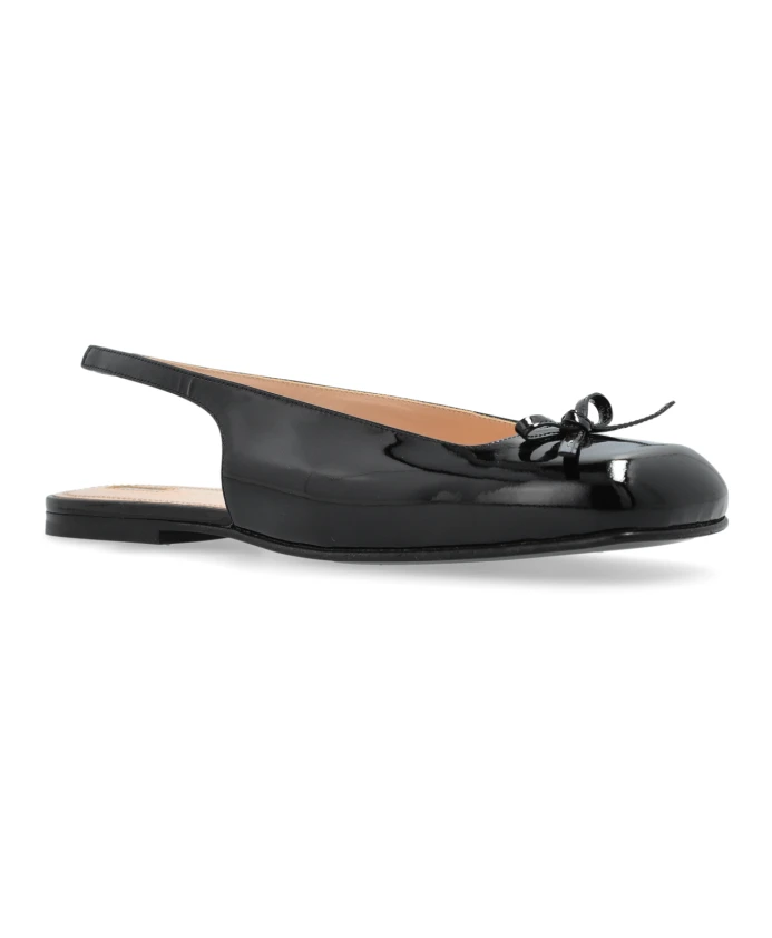Представляем кожаные балетки из эксклюзивной коллекции Nodaleto, воплощающие элегантность и современный стиль. Эти черные балетки очаровывают классическим дизайном с слегка закругленным носком и открытой пяткой, добавляя легкости и современности. Изготовленные из глянцевой лакированной кожи, балетки излучают роскошный вид. Изящный бант спереди служит стильным декоративным акцентом, подчеркивающим их уникальность. Внутренняя часть балеток украшена легкой стелькой, которая контрастирует с черным верхом, подчеркивая его утонченную конструкцию. Плоская подошва из комбинации резины и кожи обеспечивает комфорт в течение всего дня. ПОЧЕМУ СТОИТ КУПИТЬ ЭТОТ ТОВАР? * Элегантный и классический дизайн с современными деталями. * Изготовлены из высококачественной лакированной кожи. * Изящный бант добавляет стильного шарма. * Удобная плоская подошва, идеально подходящая для повседневного использования. * Универсальное дополнение ко многим нарядам. Высота подошвы: 0,5 см
