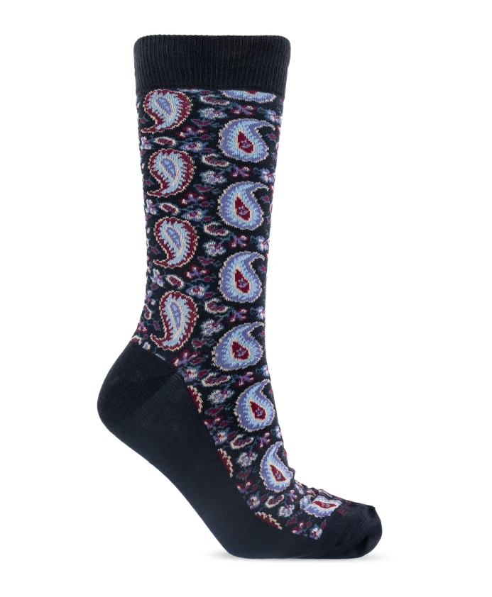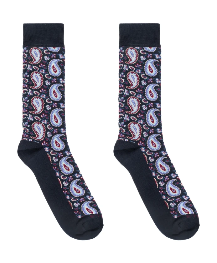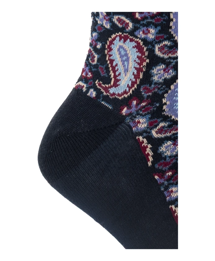 Носки с узором от Etro - это идеальное сочетание классической элегантности и оригинальности. Нежный темно-синий цвет подчеркнут смелыми восточными мотивами пейсли - визитной карточкой известного итальянского модного дома. Живописные узоры в форме капель, равномерно распределенные по всей поверхности, придают изделию неповторимый характер и визуальную глубину. Носки изготовлены из высококачественной мягкой пряжи, гладкая текстура которой и добавление эластичных волокон обеспечивают исключительную посадку, адаптирующуюся к форме стопы. Анатомически сформированные пятки и носки, а также точно сплетенная ребристая манжета обеспечивают комфорт в течение всего дня. ПОЧЕМУ ВЫБРАТЬ ЭТОТ ТОВАР? * Уникальный узор пейсли, вдохновленный индийскими традициями * Тщательная дизайнерская работа напрямую из Милана * Исключительный комфорт благодаря анатомическому дизайну * Яркая цветовая палитра с вневременной элегантностью * Фирменный стиль известного модного дома Etro
