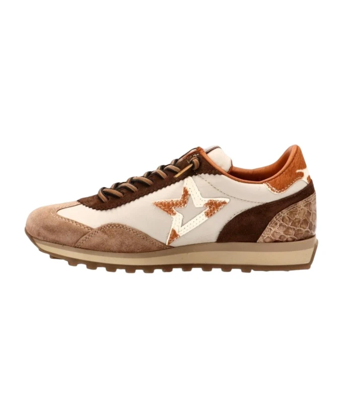 Кроссовки Cetti 1259 сочетают в себе замшу и нейлон ручной работы с мягкой съемной кожаной стелькой для повседневного комфорта и винтажного вида. Дизайн включает боковые детали в форме звезды и пятнистые акценты. Ключевые особенности: Коричневый | Бежевый | Замша и нейлон | Мягкая стелька (стелька из пенополиуретана) | Подошва из ЭВА высотой 2,3 см для дополнительной высоты и амортизации | Цепкая рифленая подошва для сцепления | Эластичные двухцветные шнурки | Съемная кожаная стелька с пенополиуретаном | Дополнительная амортизация и адаптивность | Детали в виде звезд по бокам | Пятнистый/анималистический принт | Двухцветная подошва из ЭВА | Зубчатая подошва | Винтажная ручная обработка кожи. Размеры и посадка: Высота подошвы: 2,3 см | Состав и уход: Замша | Нейлон | Кожа (стелька) | Пенополиуретан (стелька) | ЭВА (подошва) | Замша с сухой щеткой; Протрите нейлон влажной тканью. Выньте стельку, чтобы она проветрилась. Не стирайте в стиральной машине.