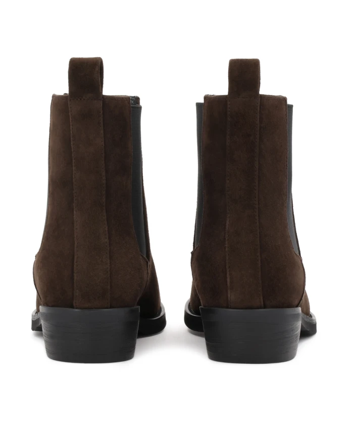 Темно-коричневые ботинки - удобный и стильный вариант для повседневной носки, идеально подходящий для тех, кто ценит функциональность и непринужденную обувь. Изготовленные из высококачественной замши, они отличаются прочностью и естественной матовой отделкой, которая идеально дополняет расслабленный городской стиль. Голенище без шнурков с эластичными вставками обеспечивает легкость надевания и снимания, а также хорошую посадку, делая ботинки практичными и удобными для ношения в течение всего дня. Широкий низкий каблук обеспечивает устойчивость, что делает эту модель идеальной для повседневного использования. Универсальный крой позволяет носить ботинки как с джинсами и курткой, так и с платьями или юбками, создавая непринужденные, но стильные сочетания. Это надежная обувь для прохладных дней, сочетающая комфорт с вневременным дизайном. Мягкая подкладка из овчины гарантирует высокий комфорт, а подкладка из искусственного меха согреет в холодные дни.