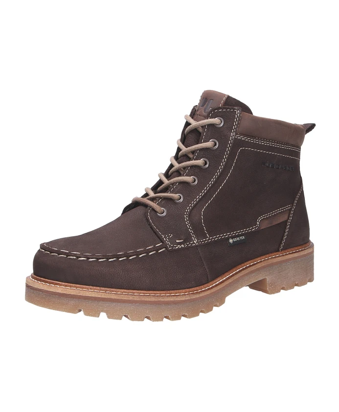 Ботинки Gabor на шнуровке сочетают в себе мягкий нубуковый верх с мембраной GORE-TEX и теплой синтетической подкладкой для повседневной носки в любую погоду. Классический дизайн на шнуровке и низкий блочный каблук делают их практичными и удобными в прохладное время года. Ключевые особенности: Коричневый | Коричневый | Нубуковая кожа | Мембрана GORE-TEX (водонепроницаемая, дышащая) | Цепкая, износостойкая резиновая подошва | Шнуровка для регулировки посадки | Теплая подкладка из искусственного меха | Несъемная текстильная стелька | Круглый носок | Низкий блочный каблук | Текстурированная нубуковая поверхность | Классический силуэт ботинок на шнуровке | Размеры и посадка: Высота каблука: около 1 см | Соответствует размеру | Ширина: G (подходит для слегка широкой стопы) | Ширина голенища: средняя (подходит для стандартной ширины голени) | Состав и уход: Нубуковая кожа (верх) | Искусственный мех (подкладка) | Текстиль (стелька) | Резина (подошва)