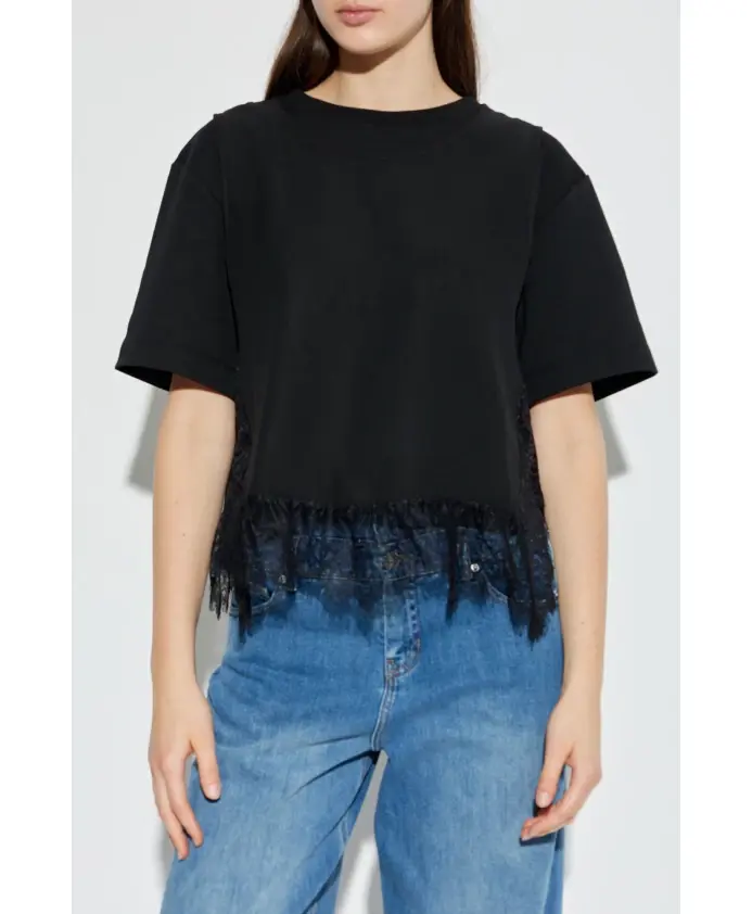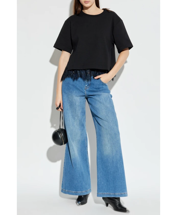Футболка Munthe Rach сочетает в себе минималистичный хлопковый трикотаж с широкой кружевной отделкой с растительным рисунком, создавая изысканный многослойный образ. Ее свободный, слегка укороченный силуэт и приспущенные плечи делают ее идеальной для современного, непринужденного стиля. Ключевые особенности: Черный | Хлопок | Боковые разрезы | Широкая кружевная отделка с растительным рисунком | Короткие рукава | Приспущенные плечи | Слегка укороченный, свободный силуэт | Круглый вырез | Гладкая, не надавливающая поверхность | Без видимого логотипа | Размеры и посадка: Длина: 51 см (размер 36) | Ширина подмышками: 52 см (размер 36) | Параметры модели - Размер: 176 см; Обхват груди: 85 см; Обхват талии: 60 см; Обхват бедер: 89 см; Модель носит размер 36 | Свободный, слегка укороченный, свободный крой | Состав и уход: 100% хлопок | Кружево: 100% полиамид | Машинная стирка при 30°C в щадящем режиме. Не отбеливать. Не сушить в сушильной машине.