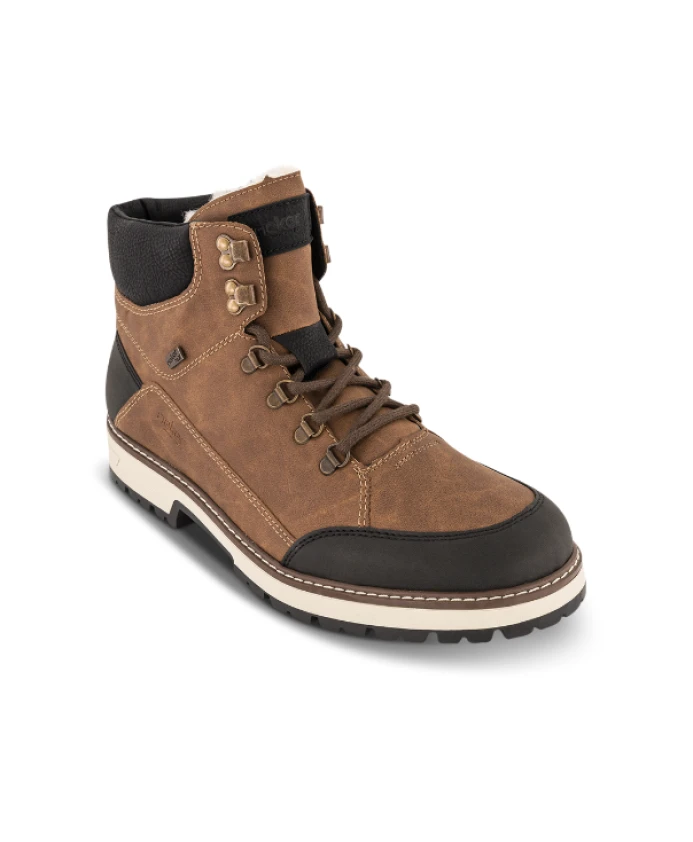 Ботинки Rieker на шнуровке сочетают в себе защиту от непогоды и повседневный комфорт. Они оснащены выдвижными шипами Flip'Grip для гололеда и водоотталкивающей мембраной RiekerTEX, которая сохраняет ноги сухими. Ключевые особенности: Коричневый | Искусственная кожа | Водоотталкивающая мембрана RiekerTEX | Термофольгированная стелька для дополнительного тепла | Цепкая, гибкая подошва TR | Выдвижные шипы Flip'Grip для дополнительного сцепления | Регулируемые шнурки | Внутренняя молния для удобного надевания и снимания | Съемная текстильная стелька | Ботинки на шнуровке | Внутренняя молния | Контрастная отделка голенища Размеры и посадка: Высота каблука: 34 мм | Высота голенища: 13 см | Комфортная ширина (G) - больше места для широкой стопы | Съемная стелька для индивидуальной регулировки | Состав и уход: Верх: Искусственная кожа | Подкладка: Подкладка из овечьей шерсти и текстиль/синтетика | Стелька: Текстиль (съемная) | Подошва: Подошва TR