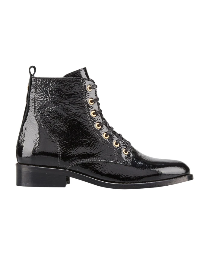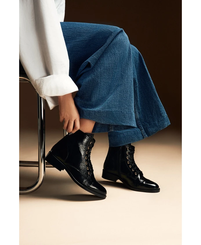Ботильоны Cosmoparis Fibi Flat Ankle Boot на шнуровке из телячьей кожи сочетают в себе легкую подошву Tunit и золотые люверсы для повседневной носки. Их плоский, слегка приподнятый профиль хорошо сочетается с джинсами, юбками или платьями. Ключевые особенности: Черный | Черный | Телячья кожа | Легкая, гибкая подошва Tunit | Низкий каблук 3 см для устойчивости и комфорта в течение всего дня | Шнуровка спереди для регулируемой посадки | Застежка-молния сбоку для удобного надевания и снимания | Высота до щиколотки | Золотые люверсы | Слегка толстая плоская подошва | Размеры и посадка: Высота каблука: 3 см | Маломерят; рекомендуется заказывать на размер больше. | Состав материала и уход: Верх: Телячья кожа | Подкладка: Свиная кожа (кожа) | Подошва: Tunit | Не водоотталкивающие. Чистить мягкой тканью, смоченной мыльной водой, промыть и высушить на воздухе. Использовать подходящий кондиционер для кожи для защиты и восстановления блеска.