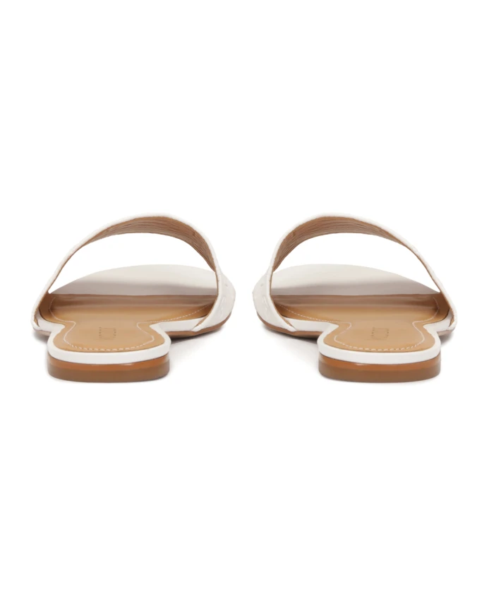 Плоские минималистичные шлепанцы - воплощение простоты и роскоши, идеально подходящие для тех, кто ценит вневременной стиль с ноткой изысканности. Изготовленные из высококачественной кожи с тисненым фирменным узором компании, они отличаются уникальным дизайном, который ненавязчиво подчеркивает их эксклюзивность. Дизайн включает в себя один широкий ремешок, обхватывающий стопу, обеспечивая комфорт и устойчивость. Белый цвет подчеркивает их свежесть и универсальность, делая их идеальным дополнением как к летним платьям, так и к более повседневным нарядам. Плоская подошва обеспечивает комфорт в течение всего дня, что делает эти шлепанцы отличным выбором для летних прогулок, отдыха на курорте или повседневных выходов. Подкладка из полуанилиновой овчины обеспечивает исключительный комфорт благодаря своим превосходным влагоотводящим свойствам. Тунисская кожаная подошва гарантирует долговечность, прочность и эстетичный внешний вид обуви.
