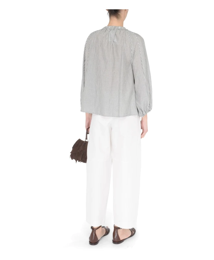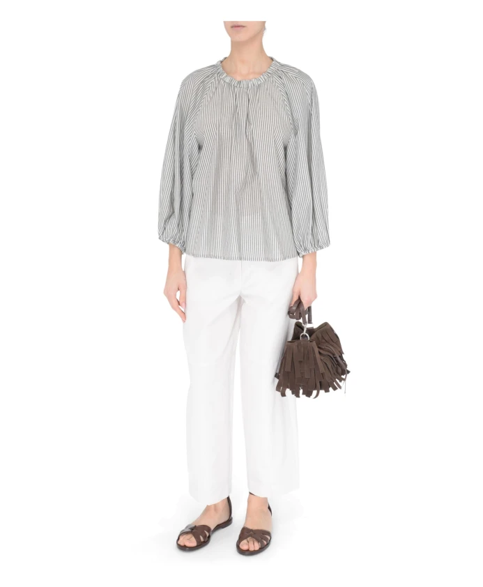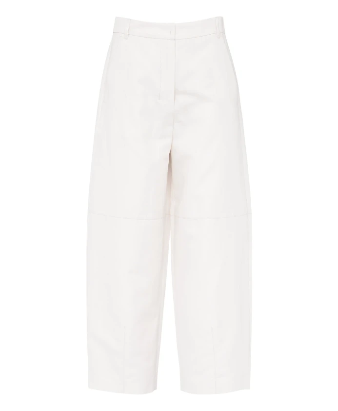 Брюки S Max Mara Jack - это свободные, но элегантные брюки из легкой смеси хлопка, льна и шелка. Широкие, слегка зауженные штанины и высокая талия делают их идеальными для создания стильных повседневных образов. Ключевые особенности: Цвет «экрю» | Хлопок-лен-шелк | Легкие | Удобные | Естественная текстура | Шлевки для ремня | Наклонные боковые карманы | Двойные прорезные карманы сзади | Скрытая застежка-молния с крючком и петлей | Свободный силуэт | Широкие штанины, заужающиеся к низу | Высокая талия | Горизонтальная вытачка на колене | Размеры и посадка: Свободный крой | Широкие штанины, слегка зауженные к низу | Высокая талия | Состав ткани и уход: 67% хлопок | 27% лен | 6% шелк. Только профессиональная химчистка (перхлорэтилен, щадящий режим). Не стирать, не отбеливать и не сушить в сушильной машине. Гладить при низкой температуре. Не подвергать влажной чистке. Перед стиркой постирайте одежду в закрытом виде, защитив застежки.