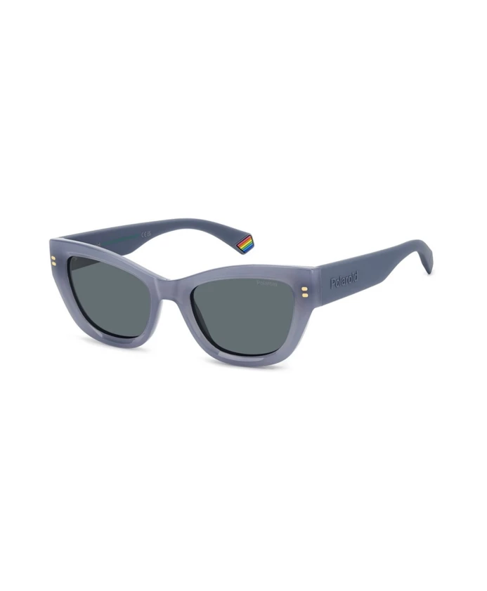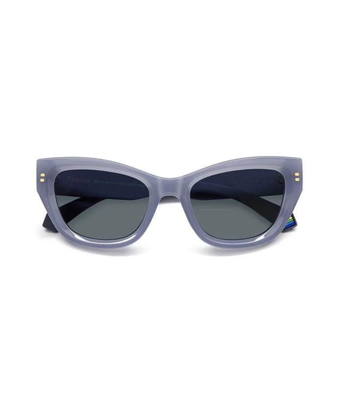 Солнцезащитные очки Polaroid PLD 6237/S/X MVU(C3) сочетают в себе скульптурную оправу «кошачий глаз» и поляризованные линзы для четкого зрения без бликов. Идеально подходят для повседневной защиты от солнца и для использования с линзами по рецепту. Ключевые особенности: Синий | Поликарбонат | Поляризованные линзы | 100% защита от УФ-излучения UV400 | Категория фильтра линз 3 | Оправа подходит для линз по рецепту | Форма «кошачий глаз»/«бабочка» | Скошенная передняя часть вокруг линз | Напечатанные заклепки | Длинные дужки с резиновым покрытием и рельефным логотипом | Размеры и посадка: Ширина линзы: 52 мм | Переносица: 20 мм | Длина дужки: 140 мм | Состав и уход: Поликарбонат (оправа). Протирайте очки мягкой салфеткой из микрофибры; при необходимости промывайте их теплой водой с мягким мылом. Избегайте абразивных чистящих средств, спирта или растворителей. Храните в защитном чехле и не подвергайте воздействию высоких температур.