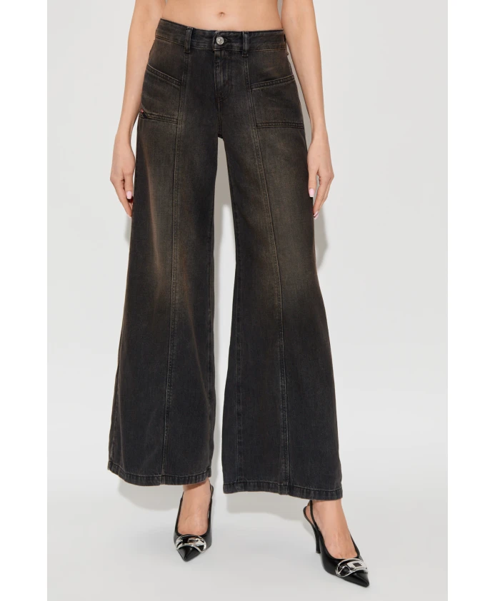 Джинсы Diesel D-AKII - это джинсы с высокой талией и широкими штанинами, расклешенные книзу, в прохладном сером оттенке, сочетающие винтажный стиль с прочной, плотной джинсовой тканью. Они отличаются лаконичным силуэтом, едва заметными деталями потертости и профессиональным исполнением. Ключевые особенности: Серый цвет | Прочная конструкция | Комфортные в носке, несмотря на плотную джинсовую ткань | Аутентичная плотная джинсовая ткань (без эластичности) | Большие наклонные передние карманы | Накладные задние карманы | Незаметная этикетка с логотипом Diesel на переднем кармане | Высокая талия | Широкие штанины, расклешенные книзу | Эффект потертости с легким выцветанием | Контрастные швы | Винтажный стиль. Замеры и посадка: Замеры модели - Рост: 176 см; Обхват груди: 85 см; Обхват талии: 60 см; Обхват бедер: 89 см; Модель носит размер: 27 | Высокая талия | Широкий расклешенный крой | Плотная джинсовая ткань (без эластичности)
