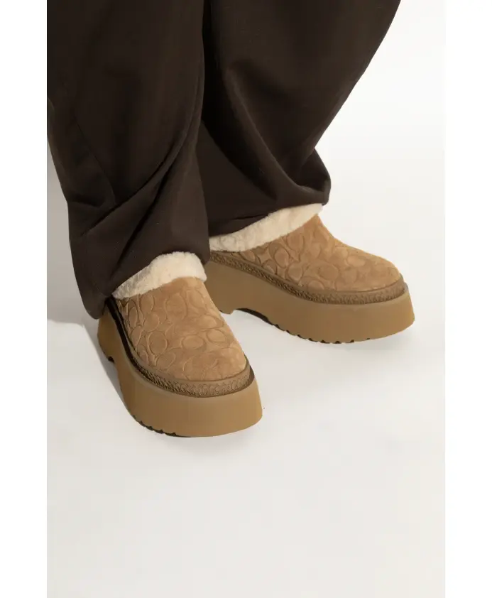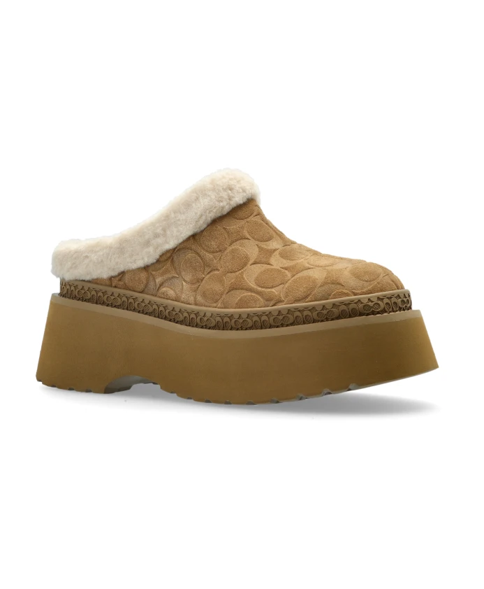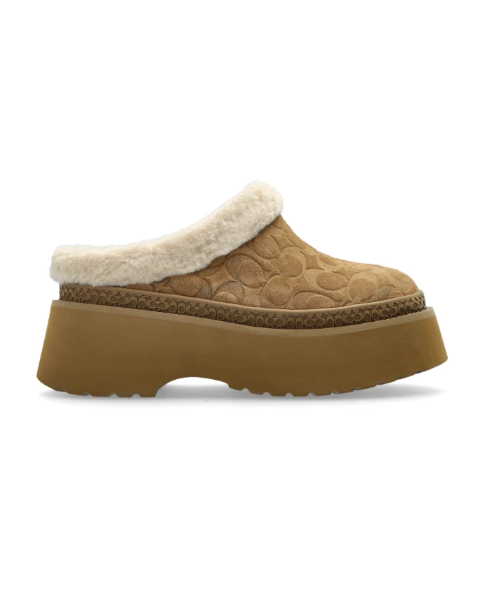Туфли на платформе Coach Cecelia сочетают в себе фирменный замшевый монограммный узор бренда с эффектным силуэтом мюлей. Эти туфли-сабо без шнурков на высокой закругленной платформе обеспечивают рост и комфорт на каждый день. Ключевые особенности: Бежевый | Замша | Легкая подошва из ЭВА | Прочная платформа | Конструкция без шнурков для удобного надевания и снимания | Отделка и подкладка, имитирующие овчину, для тепла и комфорта | Мягкая стелька для дополнительного комфорта | Высокая платформа для роста и устойчивости | Закрытый носок, открытый каблук | Рельефный фирменный монограммный узор «C» | Кремовая отделка и подкладка, имитирующие мех | Закругленная высокая платформа | Незаметный логотип COACH на стельке | Теплая коричневая подошва | Размеры и посадка: Высота подошвы: 4,5 см | Высота подошвы в самой высокой точке: 6 см | Соответствует размеру | Состав и уход: Верх: Замша | Подкладка: Шерсть (овчина) | Подошва: ЭВА