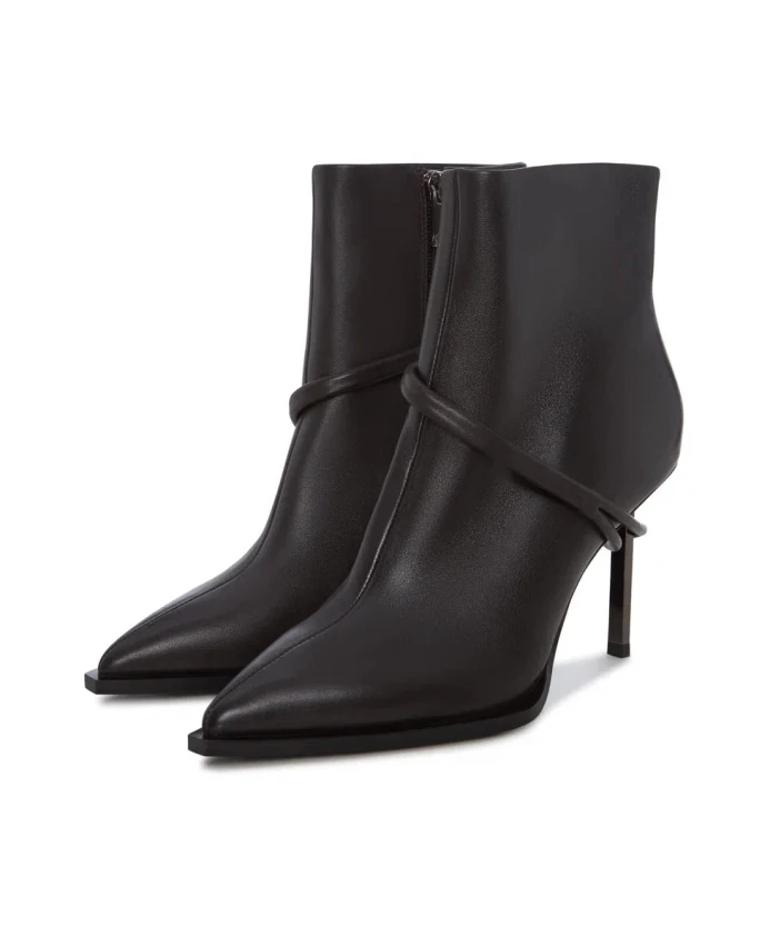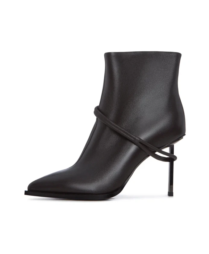 Создайте современный и эффектный образ с ботильонами Sculpted Wrap Ankle Boots - элегантным сочетанием архитектурного дизайна и дерзкой изысканности. Эти ботильоны привлекают внимание своей гладкой текстурой, минималистичными деталями в виде ремешка и смелым каблуком-шпилькой - идеально подходящим для ярких модных моментов. Эта пара имеет узкую посадку. Материал: Кожа Подкладка: Кожаная подкладка Тип набивки: Холодная набивка Форма носка: Заостренный Застежка: Боковая молния Подошва: Прочная синтетическая подошва Детали: Скульптурный силуэт с кожаным ремешком в виде ремешка Тип каблука: Шпилька Высота каблука: 10 см Высота платформы: н/д Длина голенища: н/д Посадка: Узкая Инструкции по уходу: Избегайте прямых солнечных лучей или сильного нагрева кожи. Чистите бытовым мыльным раствором. Избегайте замачивания кожи или контакта с острыми предметами. В случае пролития жидкости немедленно впитайте ее чистой сухой тканью.
