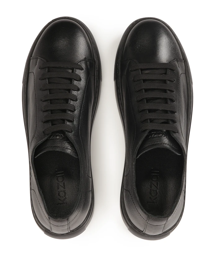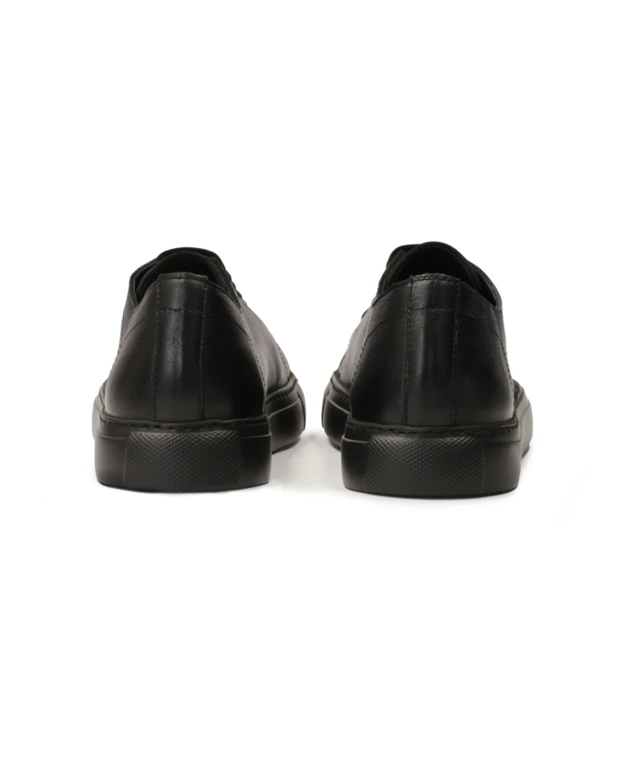 Черные кроссовки из высококачественной натуральной кожи - это универсальная обувь, сочетающая элегантность и современный стиль. Гладкая, матовая или слегка глянцевая текстура кожи придает обуви изысканный характер, гарантируя при этом долговечность и комфорт. Низкий профиль и шнуровка подчеркивают минималистичную эстетику и обеспечивают идеальную посадку и комфорт при ношении. Классический силуэт делает их универсальным выбором, идеально подходящим как для повседневной носки, так и для более непринужденных, элегантных образов. Черный цвет еще больше подчеркивает их универсальность, позволяя легко сочетать их с джинсами, чиносами или спортивной одеждой. Они представляют собой идеальное сочетание простоты, функциональности и стиля, созданное для мужчин, которые ценят высокое качество и вневременной дизайн. Внутренняя часть обуви, отделанная натуральной кожей, гарантирует гигиеничность и высокий комфорт.