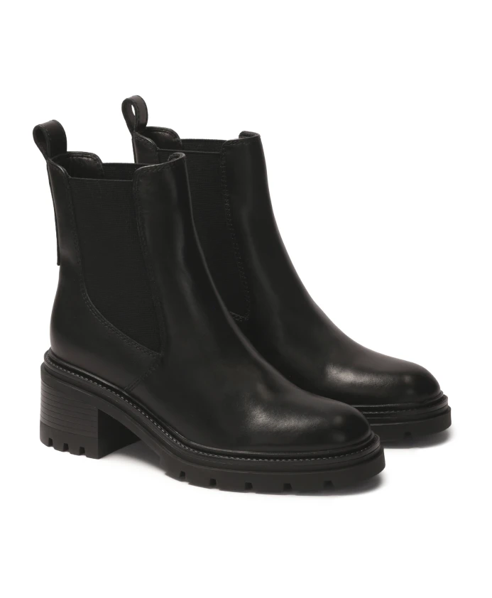 Черные ботинки челси - это классика с современным акцентом, идеально подходящая для прохладных дней. Изготовленные из высококачественной натуральной кожи, они отличаются гладкой, слегка матовой текстурой и элегантным исполнением. Эластичные боковые вставки обеспечивают удобство надевания и снимания, а также идеальную посадку. Ботинки имеют устойчивый широкий каблук и прочную подошву с хорошим сцеплением, гарантирующую комфорт и хорошее сцепление даже на скользких поверхностях. Слегка закругленные носки добавляют нотку сдержанной элегантности, а минималистичный дизайн делает эти ботинки подходящими как для повседневной носки, так и для более формальных случаев. Дополнительным преимуществом является петля на пятке, которая облегчает надевание и снимание. Мягкая подкладка из полуанилиновой овчины обеспечивает исключительный комфорт, а подкладка из искусственного меха согревает в холодные дни.