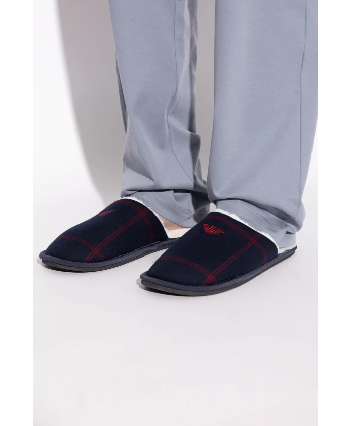 Фланелевые тапочки с клетчатым узором Emporio Armani, синий