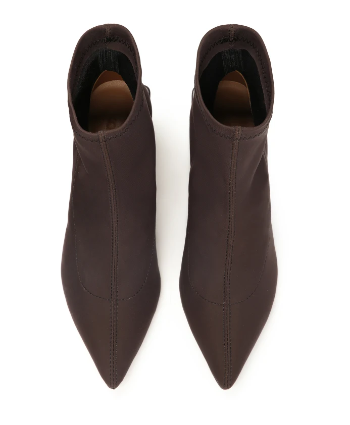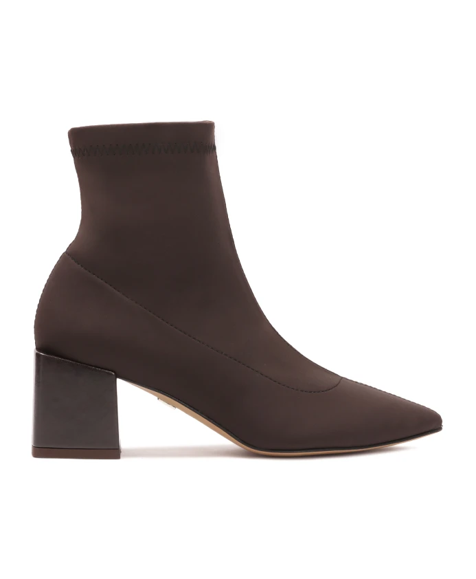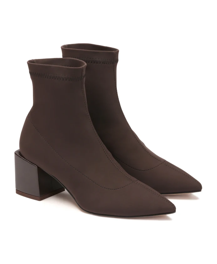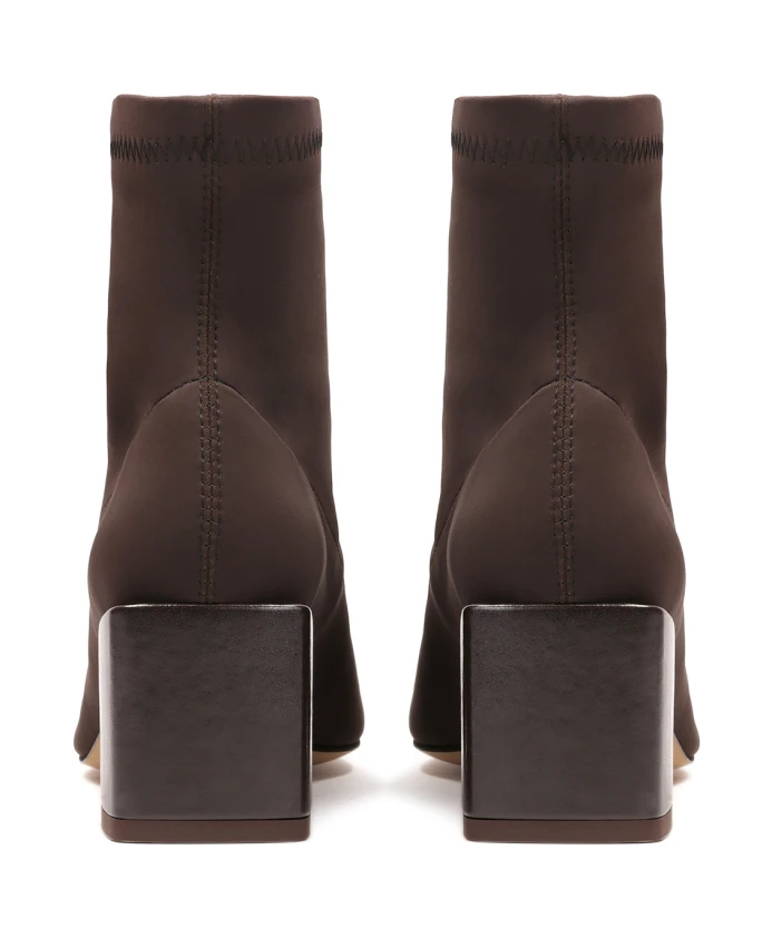 Темно-коричневые сапоги - это гармоничное сочетание современного комфорта и изысканного стиля. Модель без шнурков с гибким верхом из высококачественной ткани деликатно облегает стопу, адаптируясь к ее форме, как вторая кожа, и создавая стройный силуэт. Фирменный широкий квадратный каблук, обтянутый кожей, обеспечивает устойчивость и комфорт, подчеркивая модный характер модели. Заостренный носок добавляет нотку утонченности и создает захватывающее сочетание контрастов между мягкостью верха и выразительными линиями подошвы. Эти сапоги созданы для женщин, ценящих изысканную эстетику в современном дизайне - они идеально подходят как к минималистичным платьям, так и к узким джинсам или объемному пальто. Тонкая подошва имеет эстетически привлекательный дизайн. Подкладка из полуанилиновой козьей кожи обеспечивает исключительный комфорт благодаря своим превосходным влагоотводящим свойствам.
