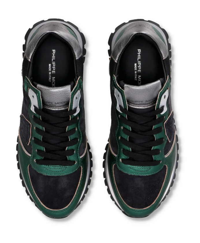 Кроссовки Philippe Model Trpx Running Sneaker сочетают в себе техническую ткань, сетку и замшу с металлизированными кожаными акцентами, создавая легкий силуэт в стиле беговых кроссовок с деталями подошвы ручной работы. Ключевые особенности: Многоцветные | Зеленый/Черный | Техническая ткань, сетка, замша и кожа | Сверхлегкая резиновая подошва | Дышащие сетчатые вставки | Гибкая подошва | Съемная стелька | Подкладка из кожи и махровой ткани | Детали из металлизированной кожи | Контрастная двухцветная вставка на пятке | Манжеты подошвы ручной работы | Низкий силуэт для бега | Размеры и посадка: Высота каблука: 3 см | Состав и уход: Техническая ткань | Сетка | Замша | Металлизированная кожа | Кожа (подкладка) | Махровая ткань (подкладка) | Резиновая подошва | Чистить мягкой тканью или мягкой щеткой. Не стирать в стиральной машине. Не использовать абразивные чистящие средства.