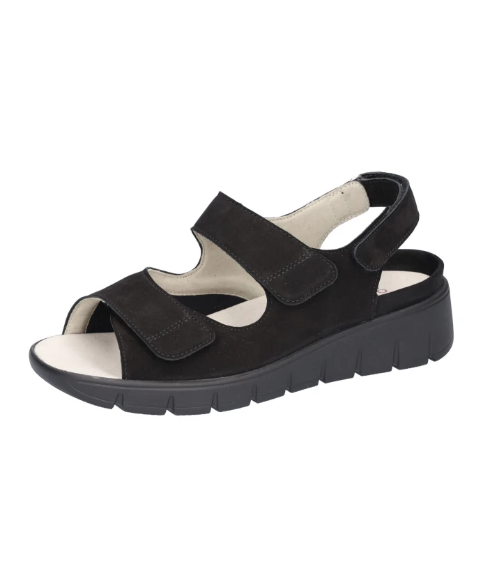 Сандалии Waldläufer K-Adea сочетают в себе поддержку и комфорт благодаря регулируемой застежке и мягкой полиуретановой подошве - они разработаны для ношения в течение всего дня и подходят для чувствительной или широкой стопы. Ключевые особенности: Черный | Черный | Нубуковая кожа | Легкая полиуретановая подошва для амортизации и гибкости | Комфортная конструкция OrthoTritt | Съемная, заменяемая стелька | Регулируемая застежка для индивидуальной подгонки | Открытый носок | Три регулируемые застежки-липучки | Эластичная вставка в передней части стопы для снижения давления | Размер и посадка: Широкая посадка (K) | Съемная стелька позволяет использовать индивидуальные ортопедические стельки | Состав материала и уход: Верх: Нубуковая кожа, текстиль (эластичная вставка) | Подкладка: Кожа, текстиль | Стелька: Съемная комфортная текстильная стелька | Подошва: Полиуретан (ПУ)